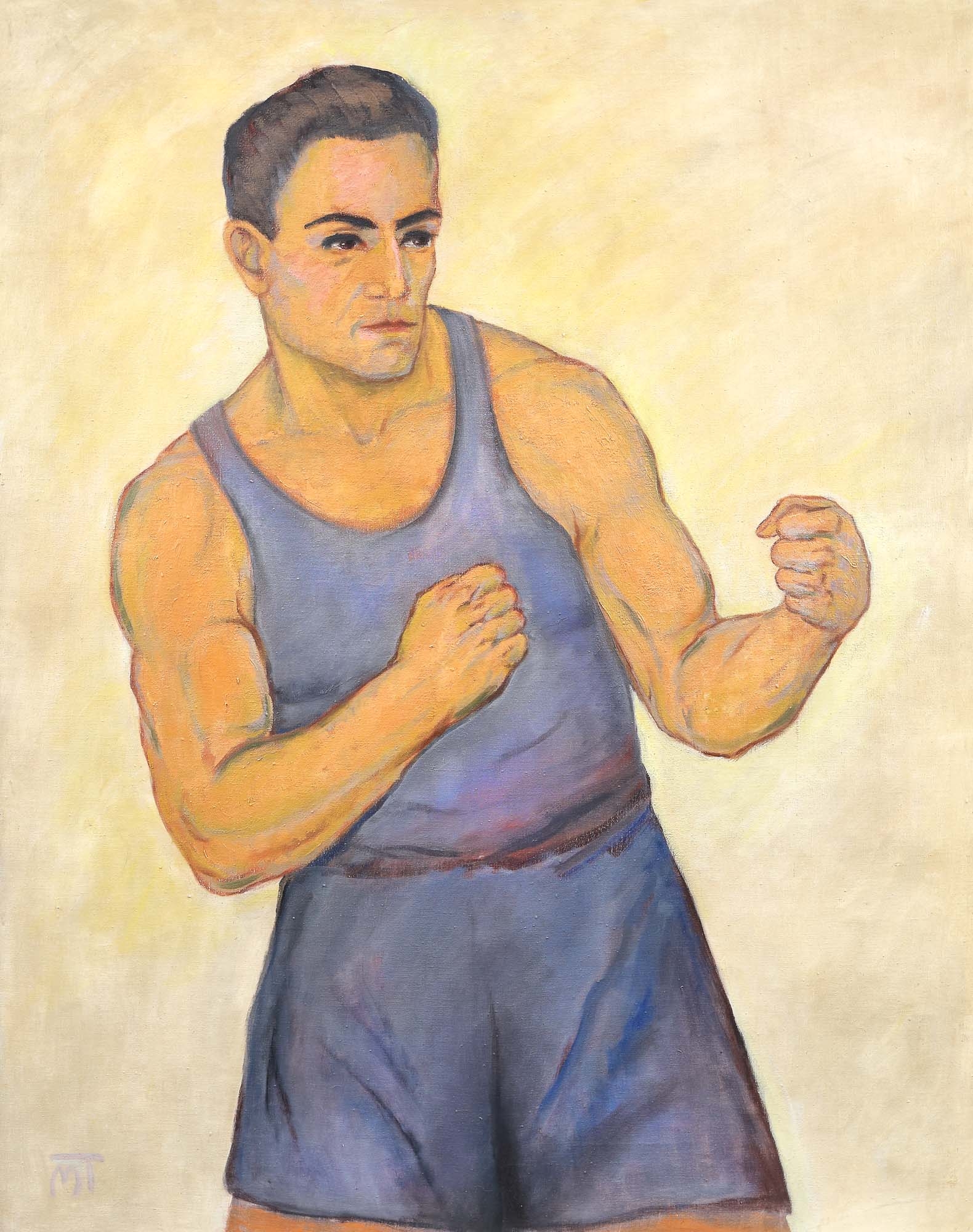 În prezent, sportul este mult mai impregnat în cotidian și în mentalul colectivității decât arta. Sportul, în artă, este oglinda unor nuanțe politice și sociale specifice epocii în care au fost realizate lucrările de gen, al vieții care se derulează indiferent de vicisitudinile locale sau internaționale ale unei perioade anume ( războaie, autoritarism politic, recesiune etc). După instaurarea regimului sovietic în România, tema sportivă în artă s-a pliat noilor cerințe politice, de formare a „omului nou”, obedient, a unei societăți pretins egalitare, totodată artiștii alegând această variantă pentru a se achita de sarcinile de partid ce le erau impuse. În albumul expoziției “Clubul sportiv al artelor”, criticul de artă Erwin Kessler nota faptul că boxul a fost un sport favorit al avangardei, evoluând rapid de la un sport de amator, cu valențe de circ, la un fenomen social capabil să atragă masele. Lucian Popescu, Moți Spakow sau Gogea Mitu sunt câteva figuri celebre ale timpului, care au făcut ca boxul să intre în literatură, artele plastice, cinematografie. Așadar, deși realizată la începutul anilor ’50, această lucrare este reverberația preceptelor la care artistul s-a afiliat de-a lungul perioadei interbelice, dar aservită noilor sarcini de partid. În același album, Erwin Kessler observă cum trăsăturile fizice ale personajului amintesc atât de figuri cinematografice ale timpului, cât și de “activiștii de partid ai momentului, cu o față ce evocă duritatea boantă a unei laturi de birou, cu mânile goale invitând la luptă un adversar invizibil, dar evident incapabail să șifoneze” echipamentul apretat al activistului pugilist. Artist de talie internaţională, Mattis-Teutsch pe lângă colaborarile cu reviste şi grupuri marcante ale avangardei, expune activ alături de cele mai importante nume ale epocii, personalităţi care la fel ca şi artistul proliferau primatul spiritual al artei, concept cu care Kandinsky revoluţiona arta modernă cantonată în redarea realităţii imediate, cotidiene. În anul 1921 expune de două ori alături de cei din Der Sturm – alături de Paul Klee, și în expoziția colectivă ce marca 100 de numere ale revistei omonime, alături de Boccioni, Braque, Itten, Kandinsky, Klee, Picabia.