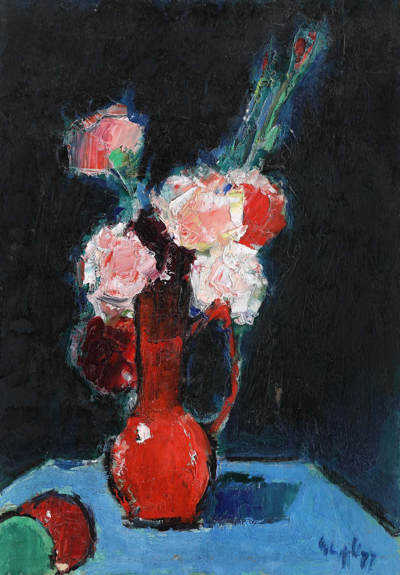 semnat și datat dreapta jos, cu albastru, "Gng. V., (19)77"