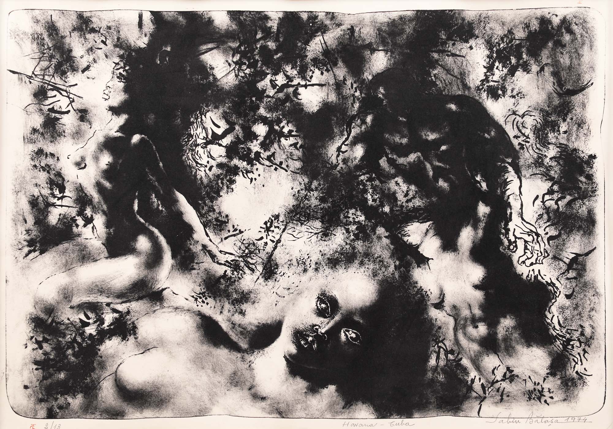 semnat și datat dreapta jos, în creion, "Sabin Bălașa, 1974"; intitulat central jos, în creion, "Hawana - Cuba"; numerotat stânga jos, în creion, "2/13""
