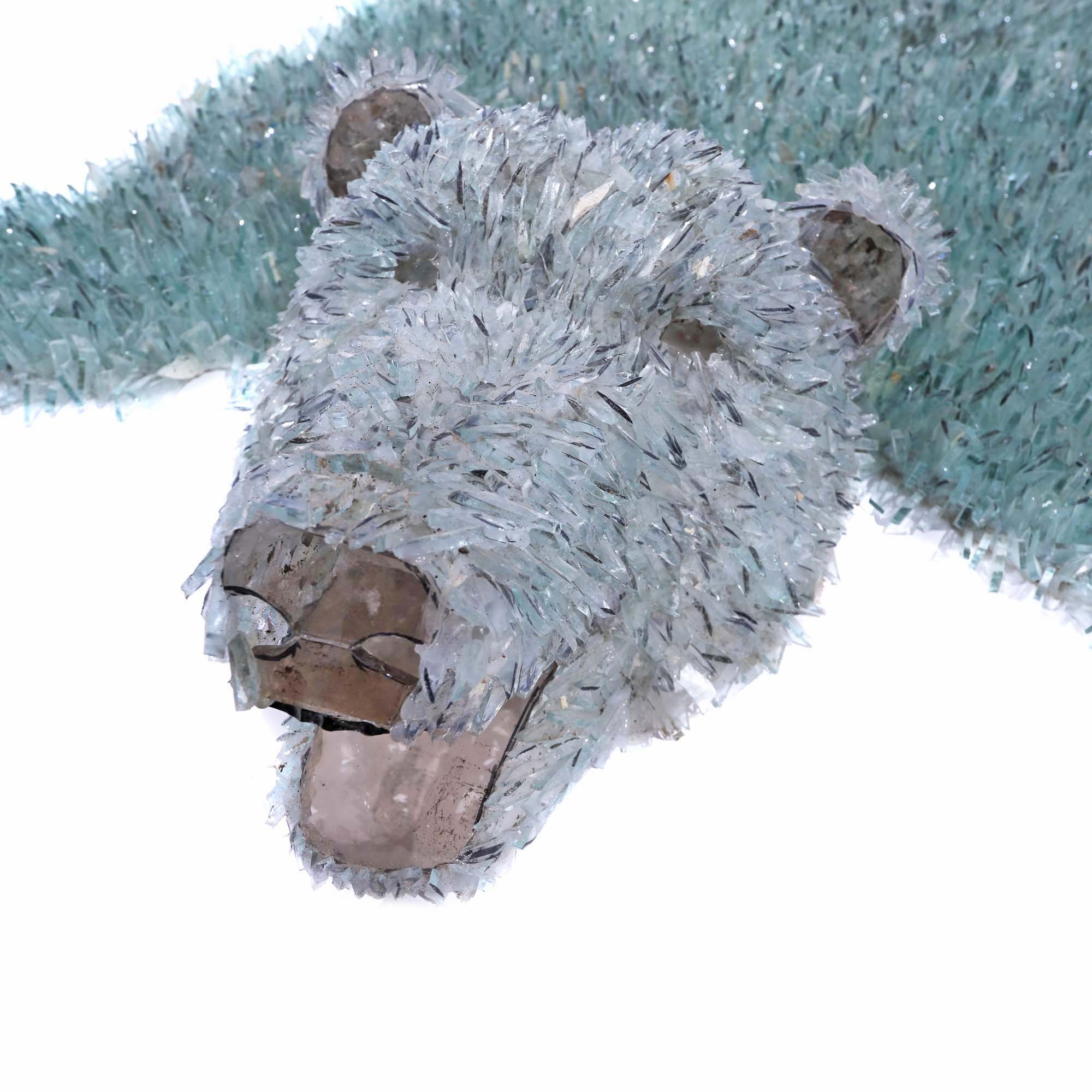 Ideea generală a lucrării ”Laudă” a pornit de la o observație a unor locuințe in care proprietarii caută să împodobească încăperile cu anumite obiecte ce au scopul de a atrage atenția asupra lucrurilor pe care le posedă sau despre meritele personale, comoditatea obiectelor nefiind un interes pentru aceștia, covorul din blană de urs este unul din obiectele folosite mai mult ca laudă în pofida utilităților sale. Lucrarea este realizată din cioburi de sticlă ascuțite pentru a-i accentua ideea de obiect decorativ și neuzual în viața de zi cu zi.