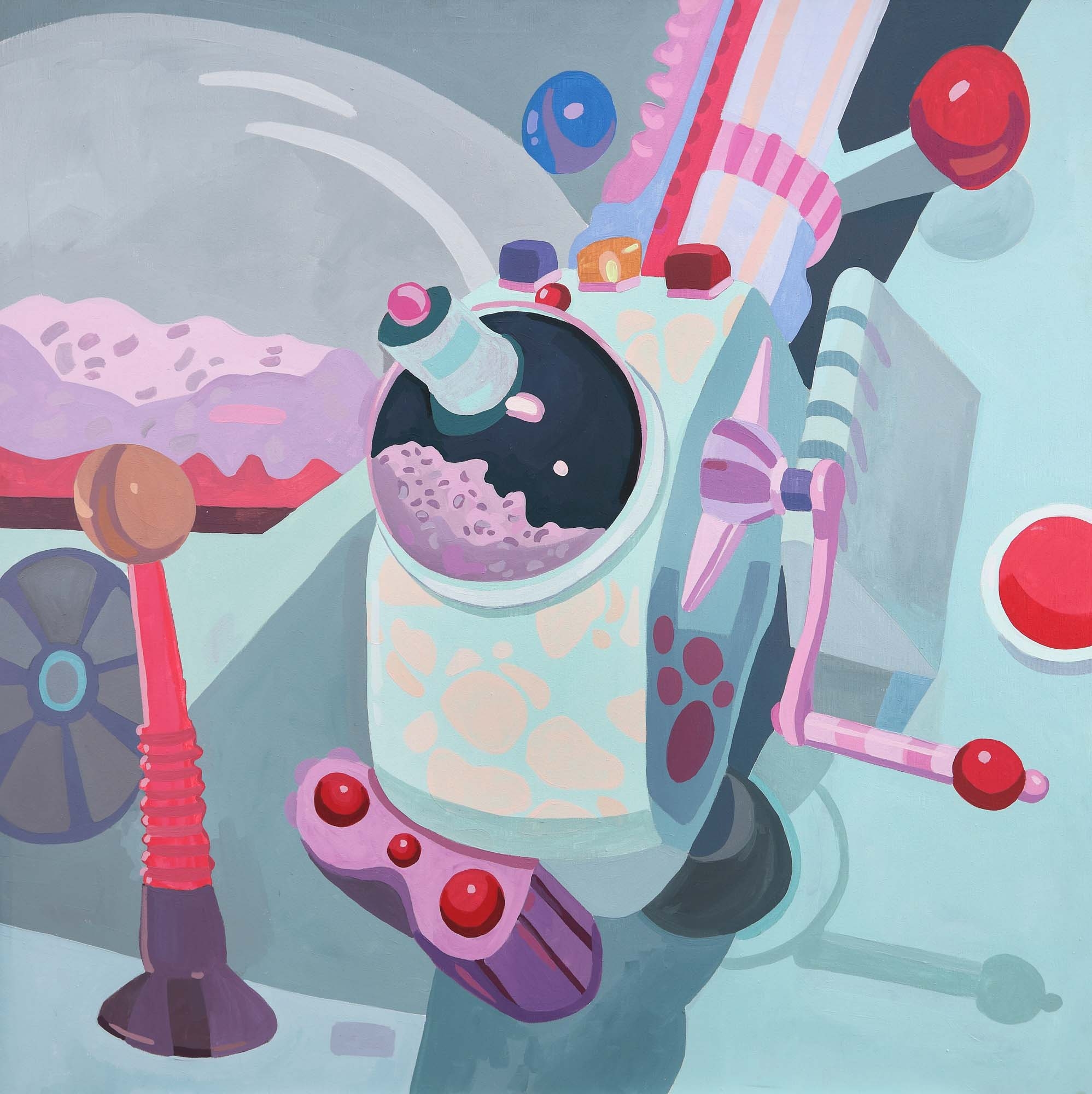 Proiectele lui Mimi iau naştere din dorinţa de a îmbogăţi spaţiul cotidian cu semnificaţii aparte, secrete, personale. Mimi este un caracter colorat căruia îi place kitsch-ul în toate manifestările sale. În prezent, artista locuieşte şi creează la Bucureşti. Ideea proiectului îşi are originea în interesul artistei pentru estetica kitsch-ului şi pentru sensibilitatea camp. Lucrările din cadrul proiectului “Clovnii ucigaşi” au fost inspirate din filmul “Killer Klowns from Outerspace” (1988). Artista a fost atrasă atât de povestea filmului, cât şi de înfăţişarea clovnilor întrucât îi oferă o pistă excelentă pentru a aborda şi a dezbate problema estetică ce o preocupă. Chipurile ridate şi gurile cu dinţi ascuţiţi ale clovnilor contrastează puternic cu tonurile pastelate folosite pentru costume şi nava spaţială. Aceştia sunt inofensivi, dar ucigaşi, adorabili, dar înfricoşători, delicaţi, dar agresivi Interpretarea artistului asupra temei stă sub semnul ironiei, însă aparenţele înşală de multe ori. Clovnii pot înşela dar pot fi exact ceea ce par. Ei pot trage cu pistoale roz din plastic, ucigând. Rămâne la latitudinea fiecăruia de a decide ce urmează: clovnii ucid cu adevărat sau sunt doar simple paiaţe colorate.