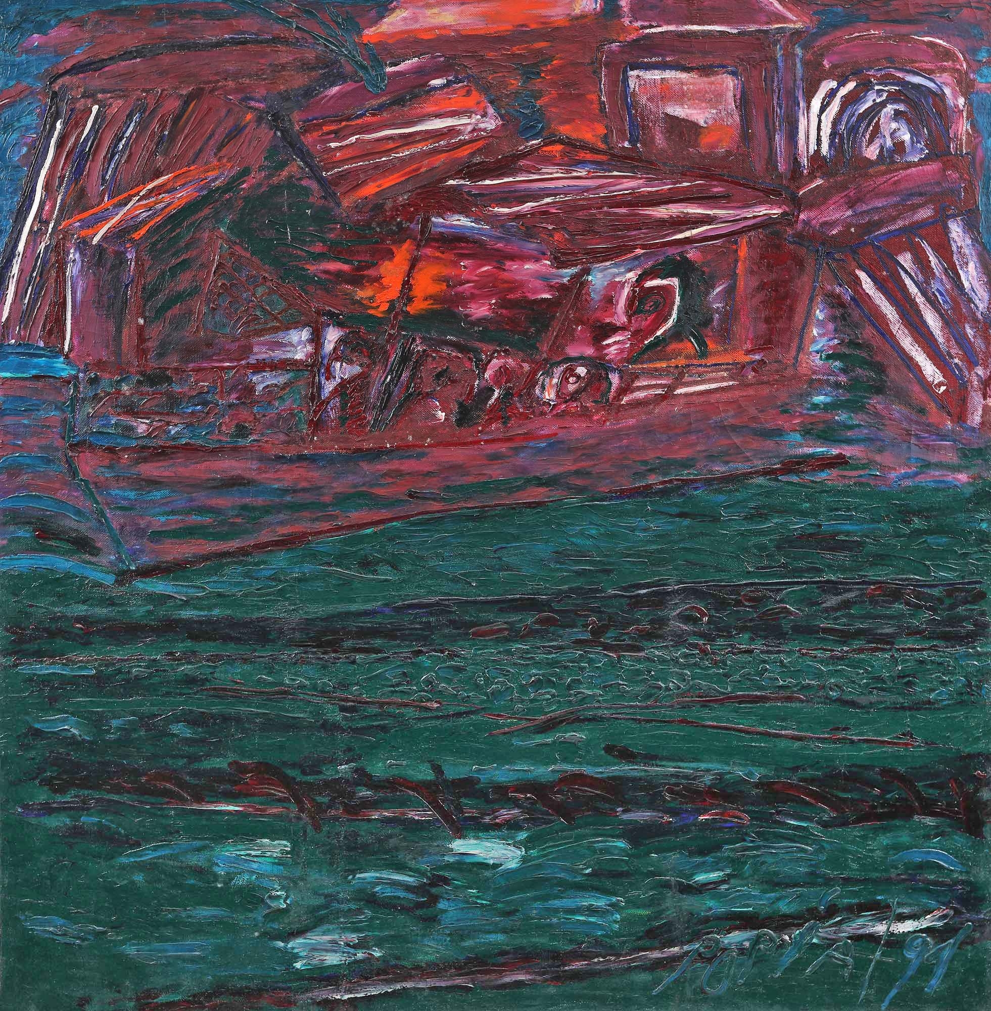 semnat și datat dreapta jos, cu albastru, "Pop I.A., (19)91"