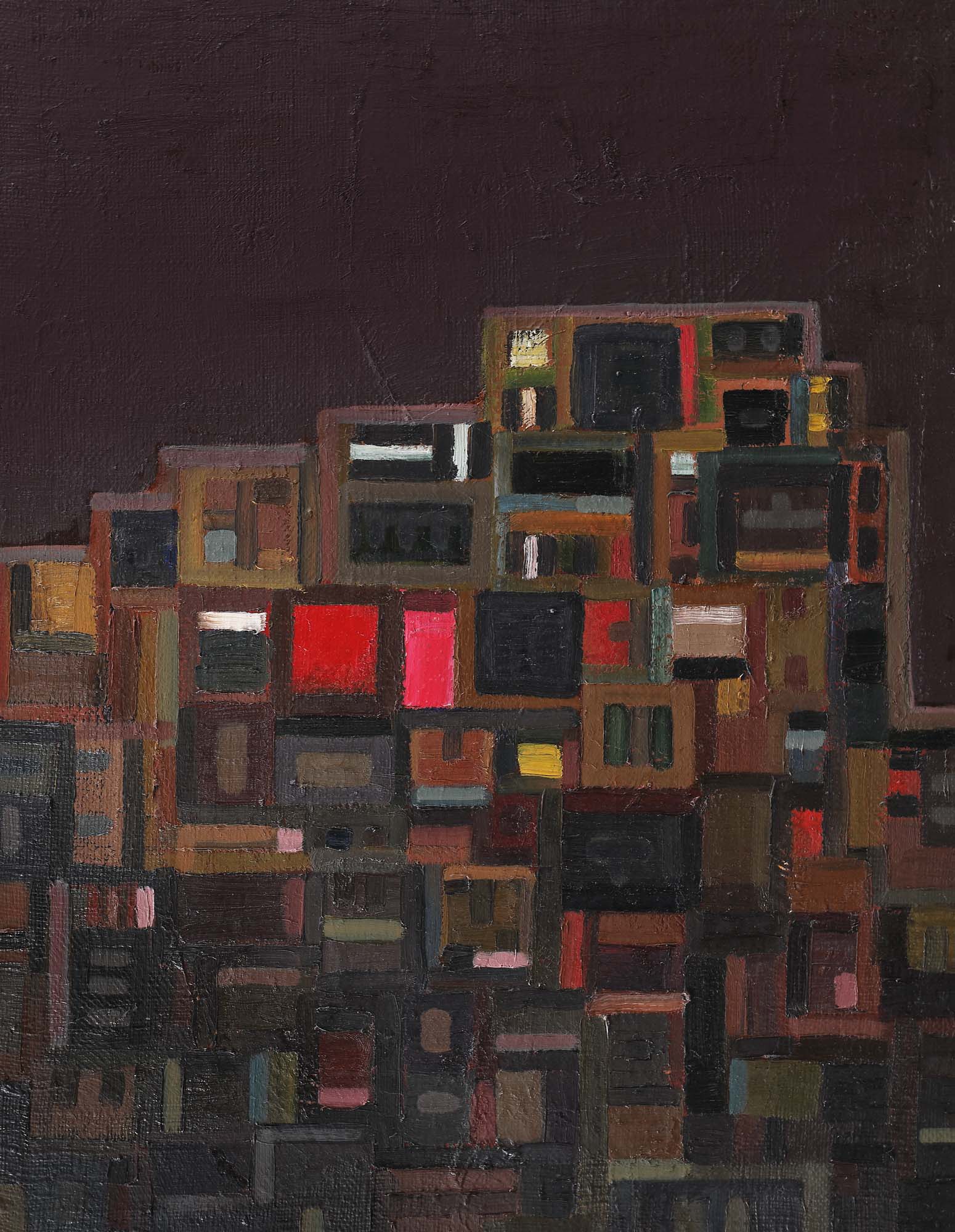 semnat și intitulat pe verso, cu negru, "Gil Nicolesco, Oraș, noaptea"