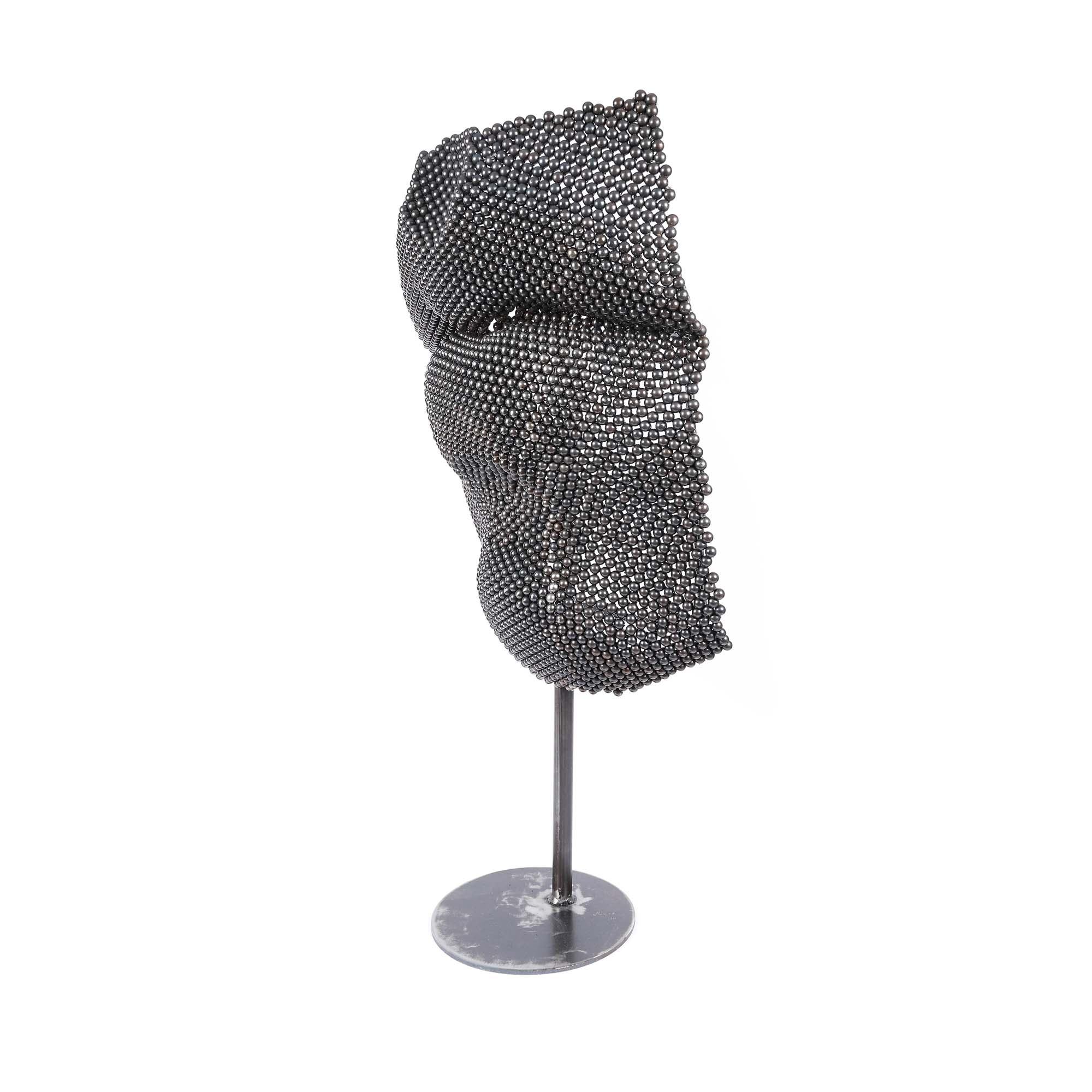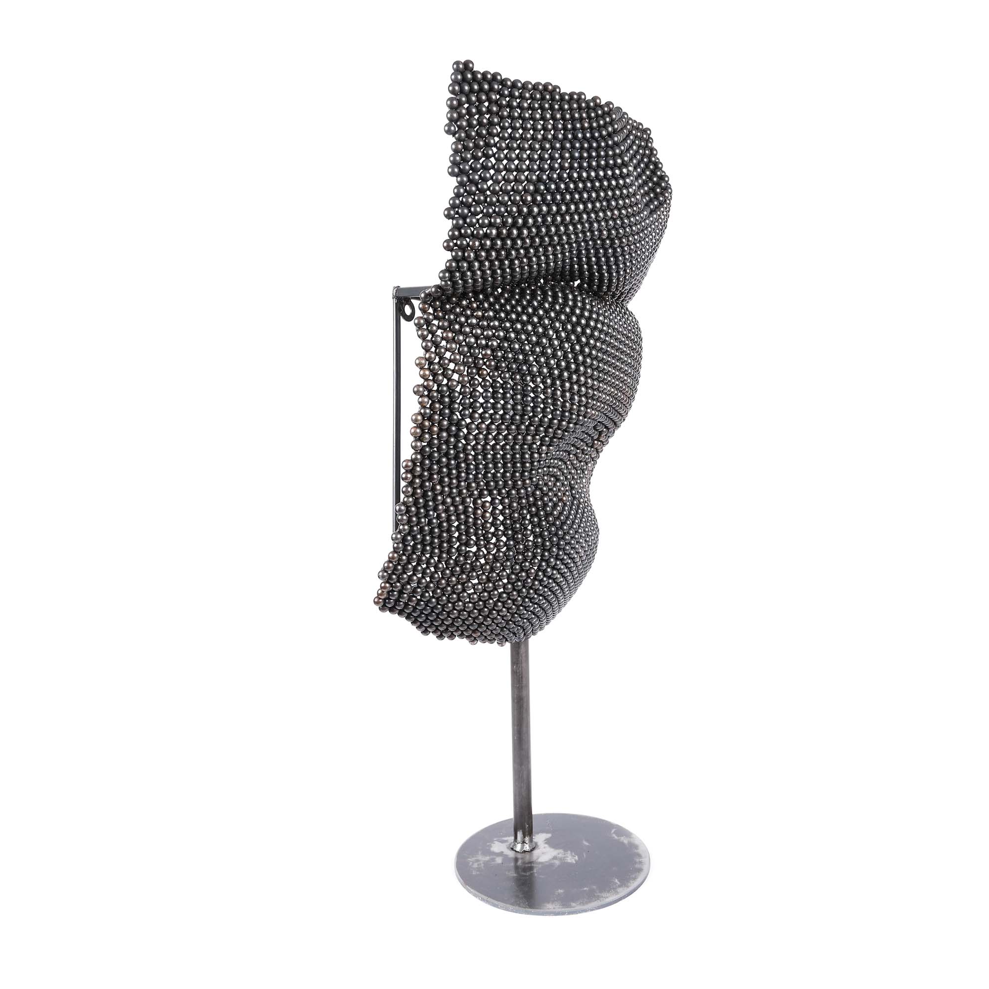 "Am descoperit metalul în facultate, chiar în primul an. Cum atunci făceam o incursiune pe la toate secțiile, în prima oră, când am ajuns la secția Metal, am rămas cu ochii blocați. Eram fascinată de ce puteam face cu acea bucățică de tablă pe care o aveam în mână, cum am tăiat-o, cum am bătut-o frumos cu ciocanul cu bilă pe buturuga de lemn și mi-a prezentat așa, un căuc – totul era nou pentru mine, iar tehnicianul ne prezenta fiecare tehnică și procedeu. Mintea mea începea să lucreze: pot să fac și asta, și asta – e materialul pe care-l căutam. Din acele zile, eram convinsă că voi învăța să lucrez în metal. Proiectele pe care le gândeam la asta se pretau. Am găsit metalul rece, dur, și mi-am propus să-i dau căldură vizuală și formală, prin volumetrie și compoziție. Încerc să îi dau feminitate, să mă joc cu suprafețele și texturile cu plinul și golul." Lucrări de Misha Diaconu se află deja expuse permanent în spații publice, dar și în colecții muzeale precum cea de la Centrul Cultural "Palatele Brâncovenești" Mogoșoaia, Muzeul de Arte Vizuale din Galați, Teatrul Metropolis etc. Lucrarea curentă, parte din seria "Te simt în podul palmei", este o invitație la un dialog, nu doar vizual, dar și tactil, citirea tridimendionalului prin atingere, cu scopul de completare a imaginii.