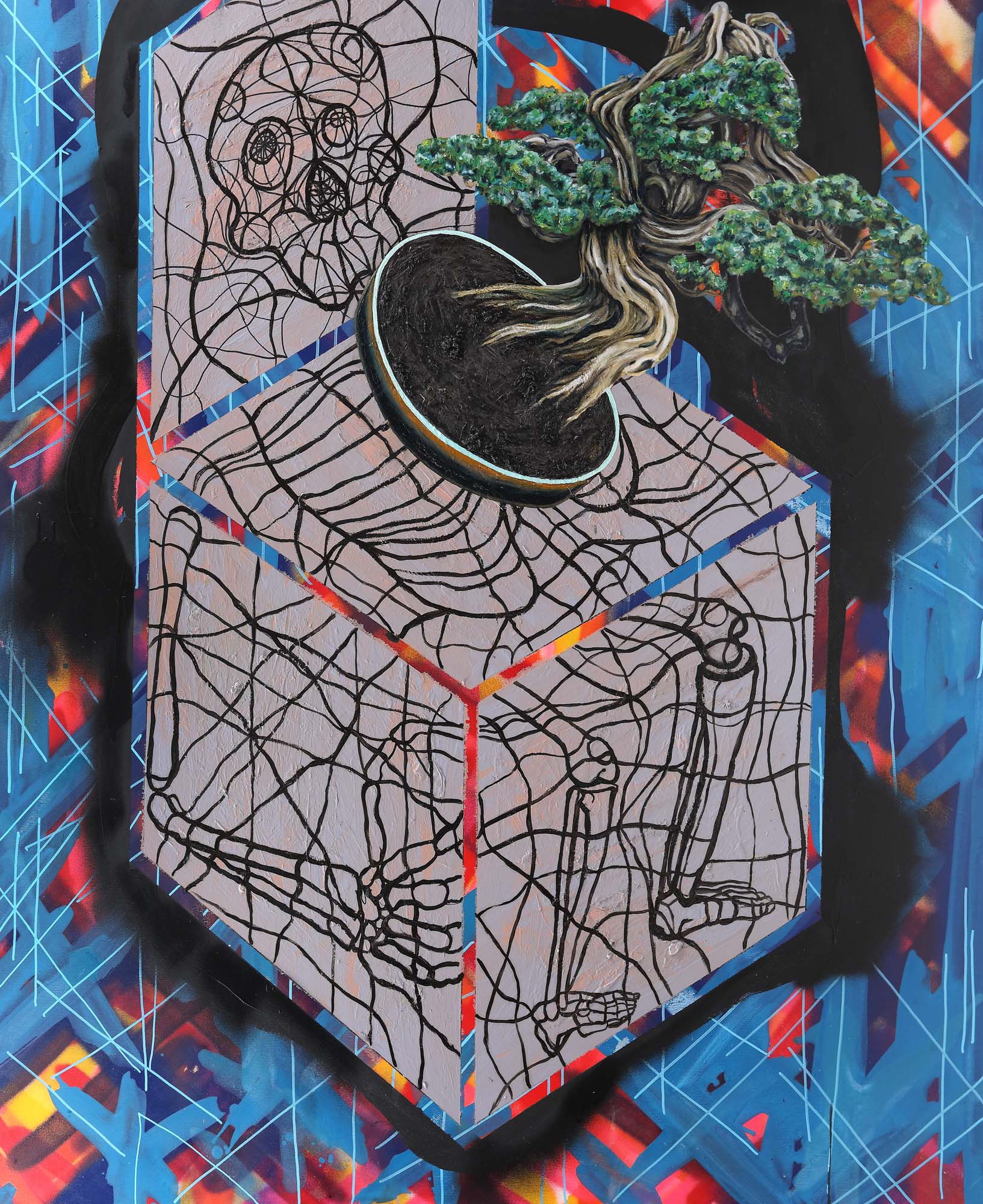 spray, acrilic și ulei pe pânză
