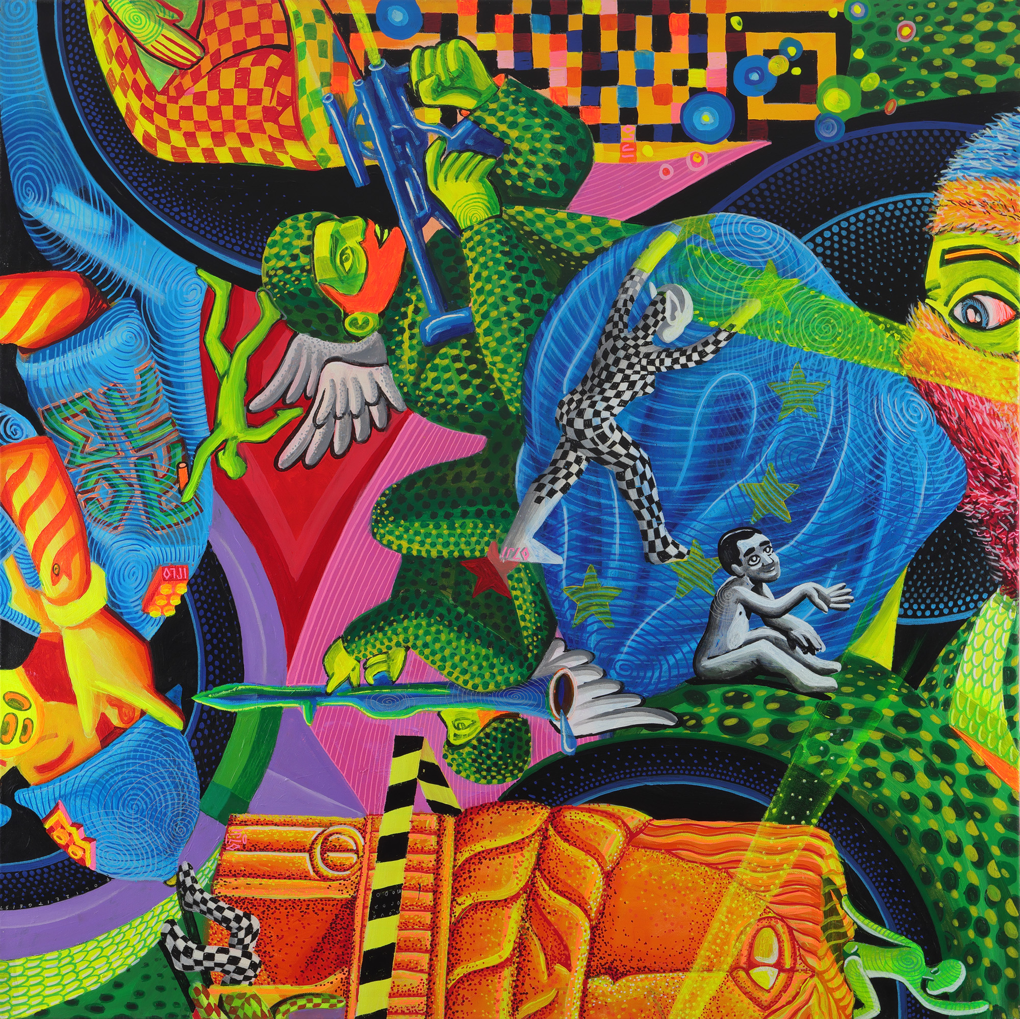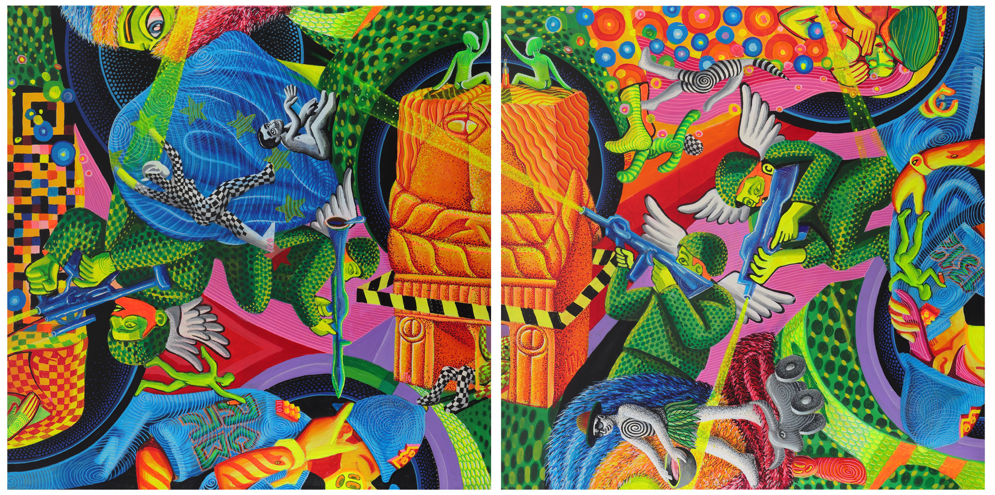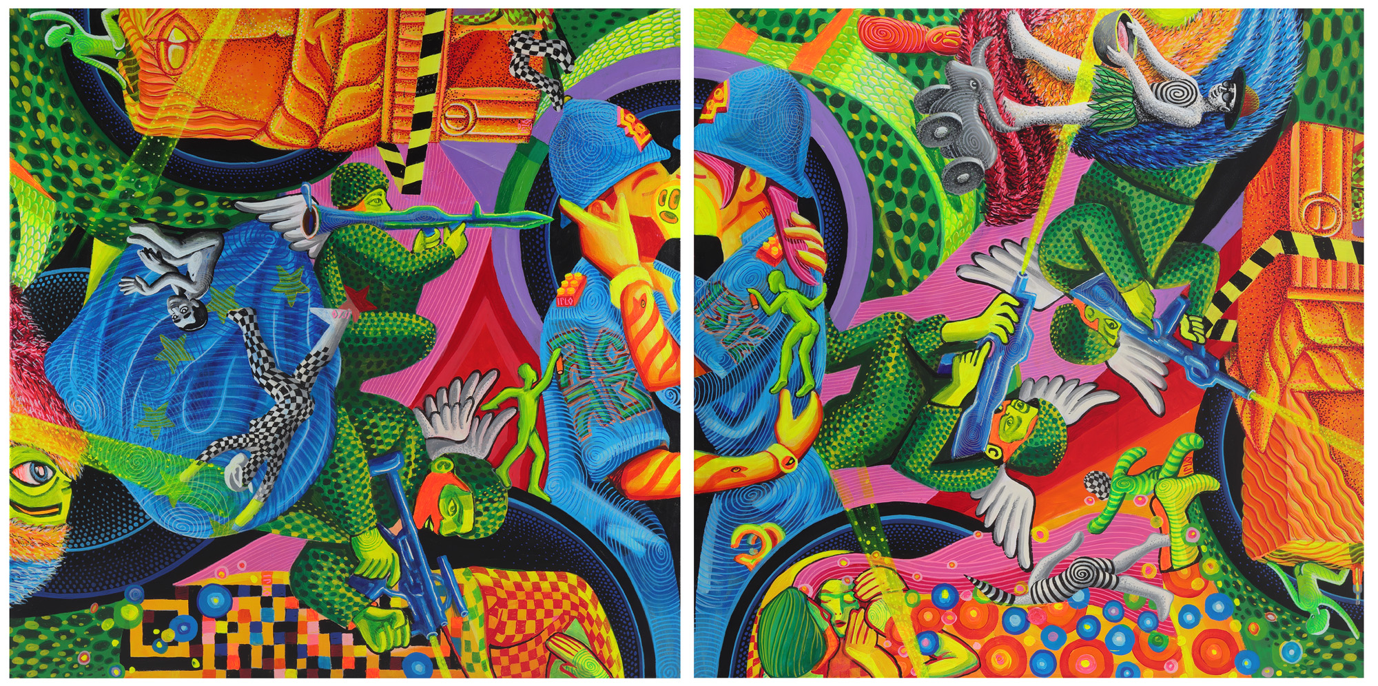 semnat, datat, intitulat și notat pe verso, cu negru, "Irlo, Cupidons: Remix Brâncuși, Klimt și Banksy, 2025"