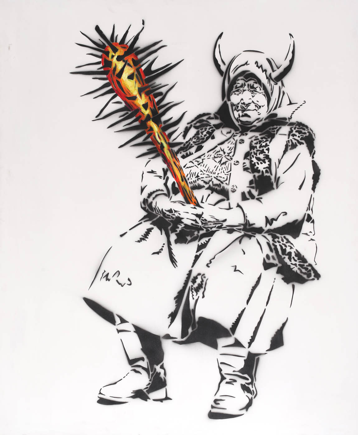 stencil și ulei pe pânză