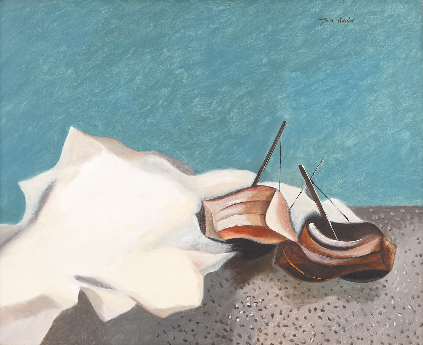 semnat dreapta sus, cu brun, "Jean David"