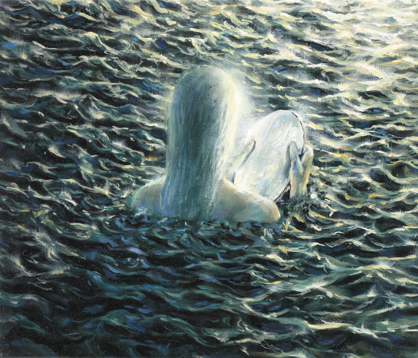semnat, datat și intitulat pe verso, cu negru, "Andrei Gamarț, Catching The River, 2018"