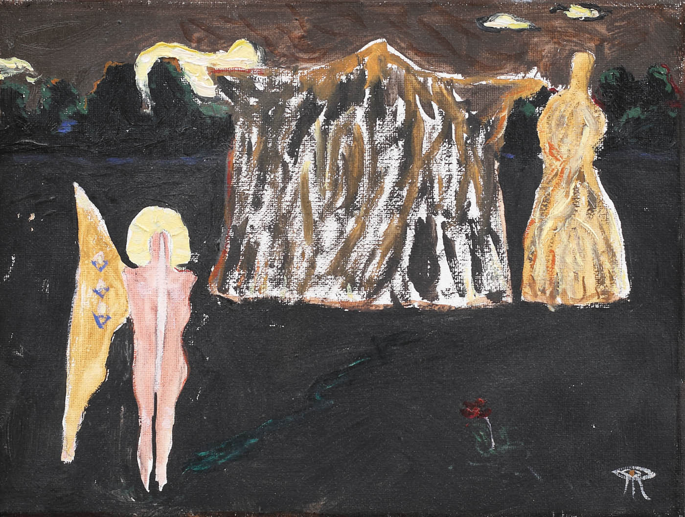 semnat dreapta jos, cu alb, în monogramă, "PR"