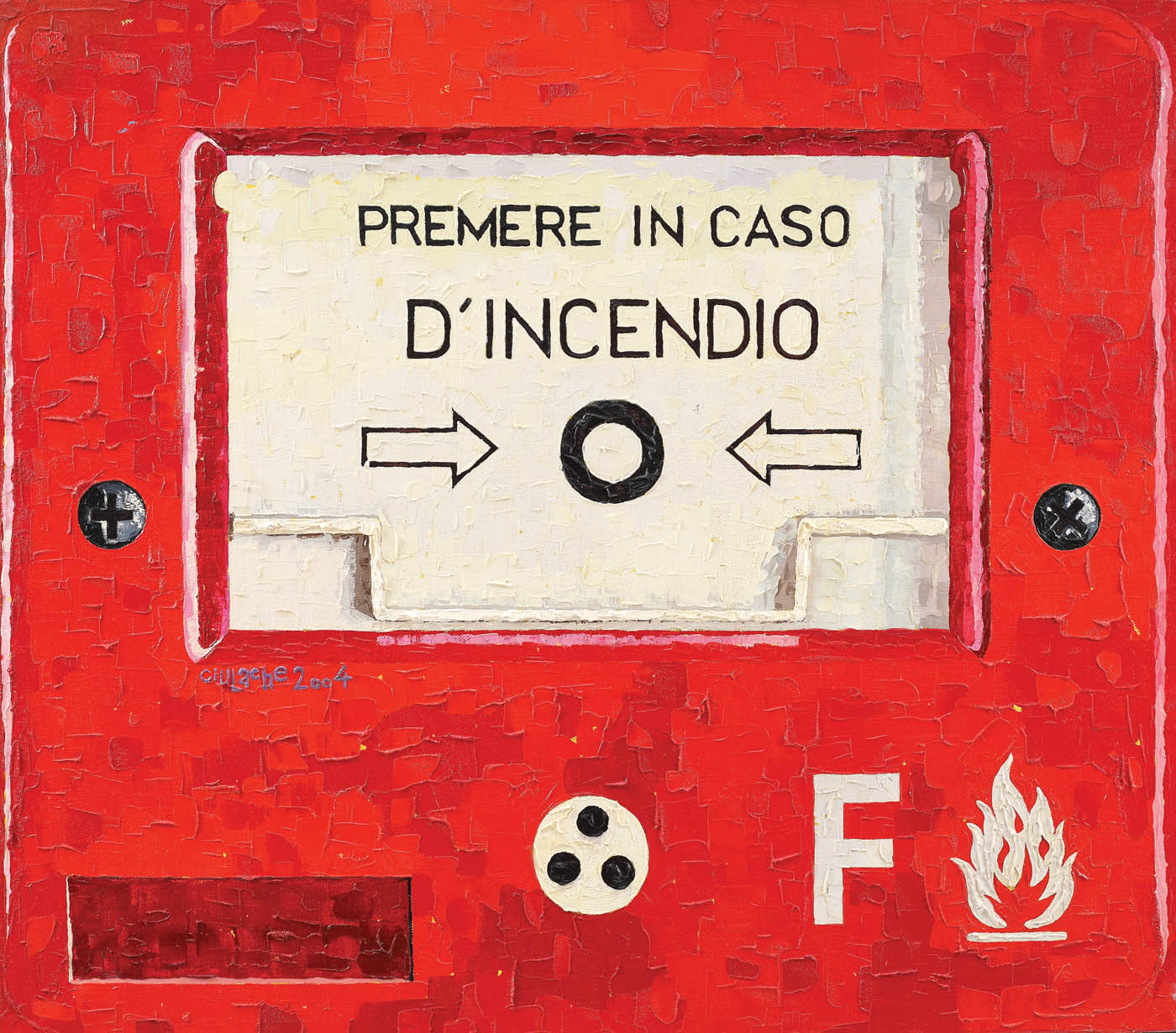 semnat și datat stânga jos, cu gri, "Ciulache, 2004"; semnat, datat şi intitulat pe verso, cu negru, "Florin Ciulache, Premere in caso, 2004"