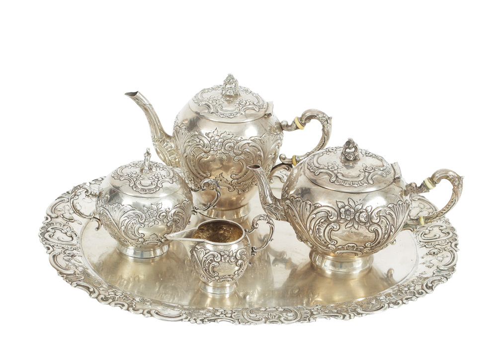42. Serviciu de cafea (sau ceai), din argint bogat decorat în stil Neo-baroc, cca 1885