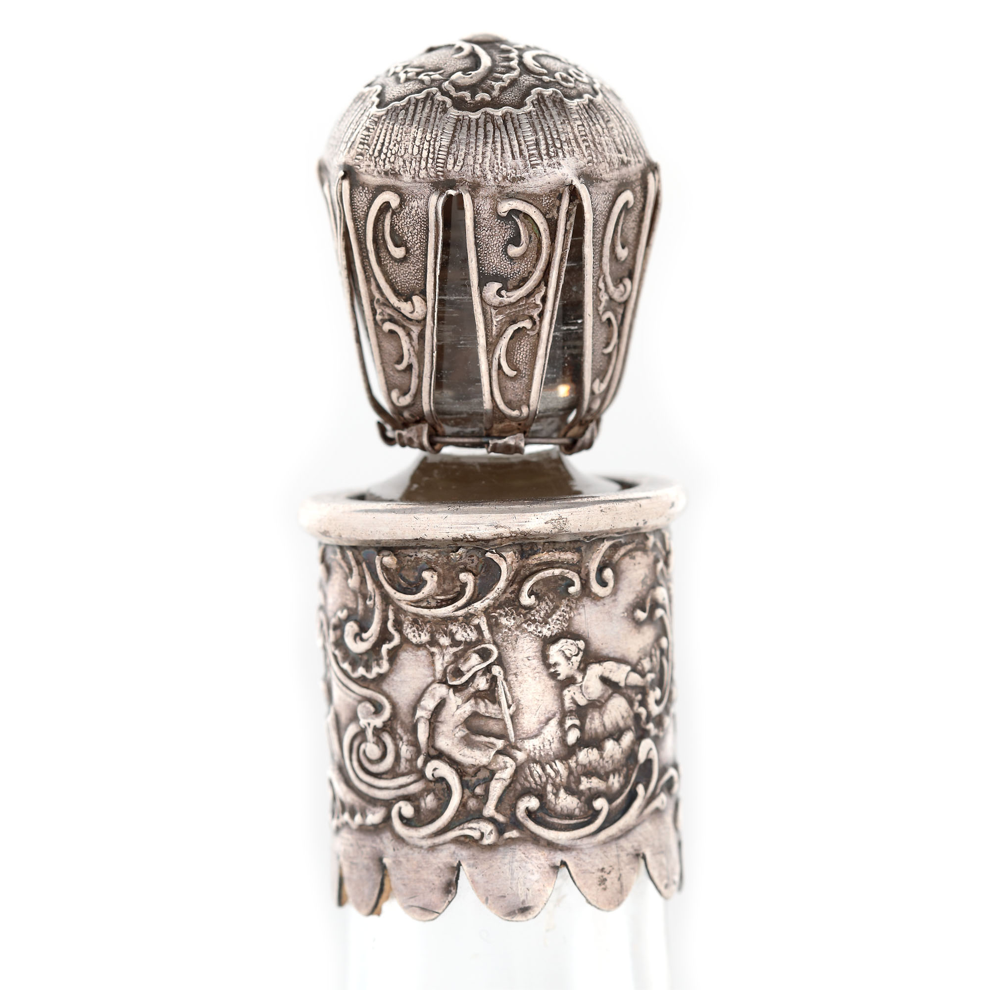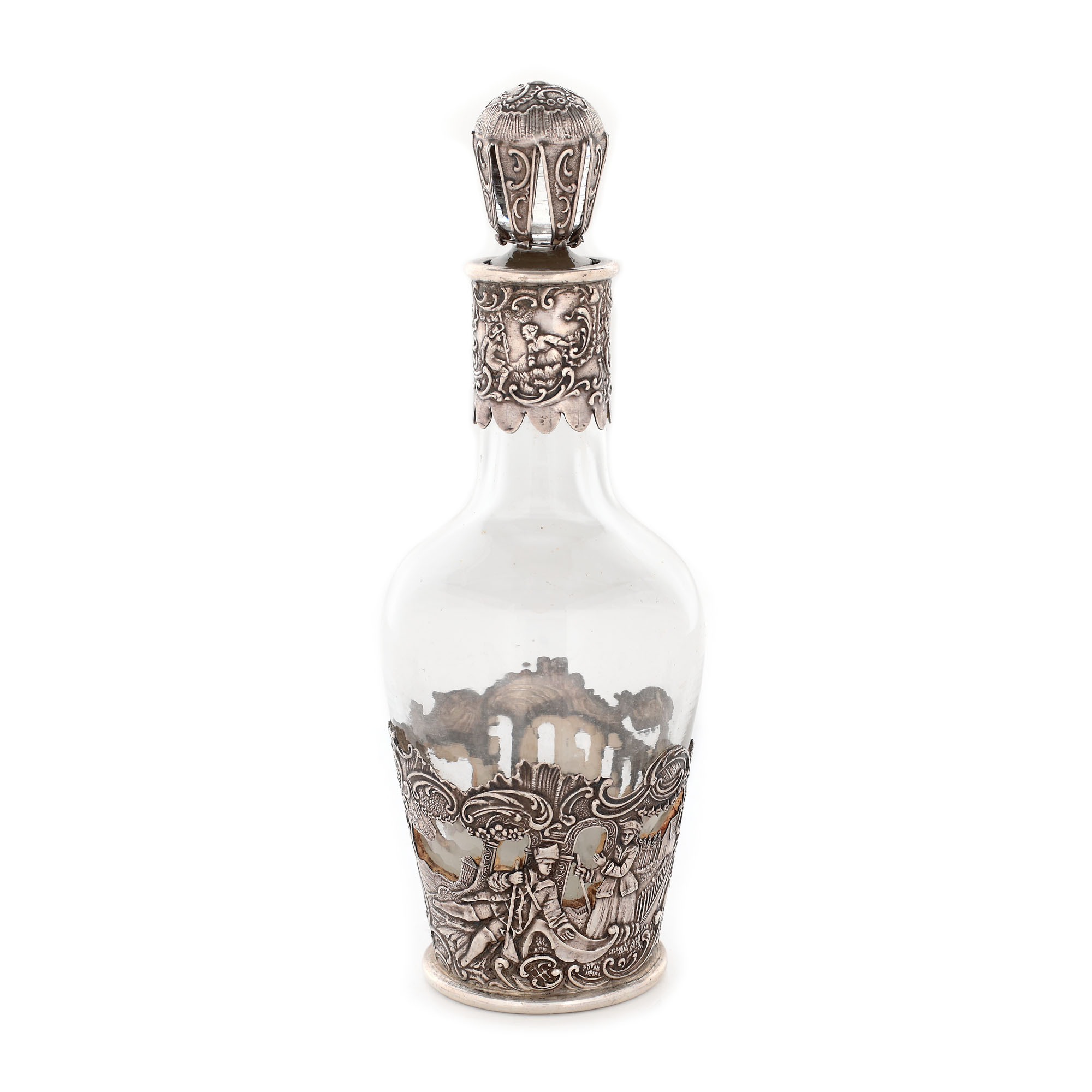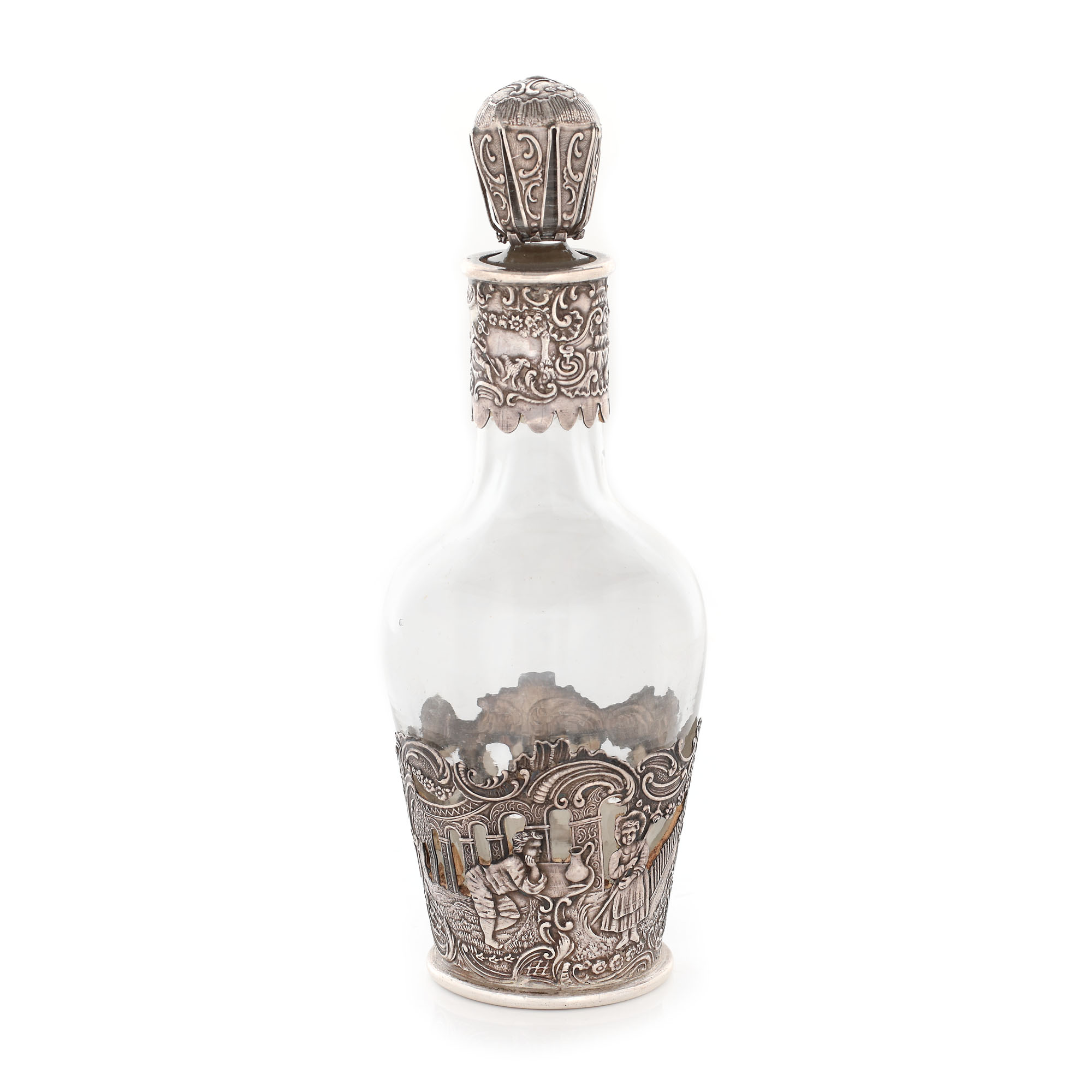 98. Flacon cu montură din argint Storck & Sinsheimer, decorată cu scene pitorești, cca. 1900