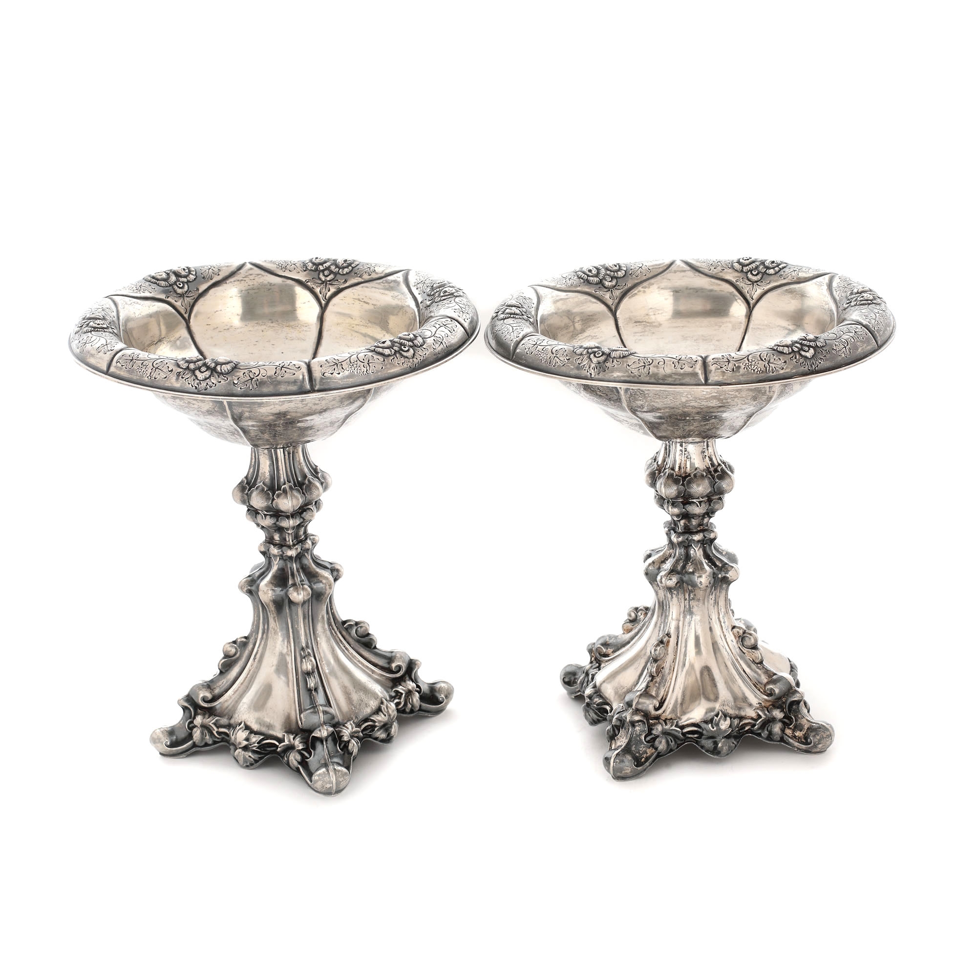 89. Pereche de fructiere, din argint, în manieră Biedermeier, cca. 1880