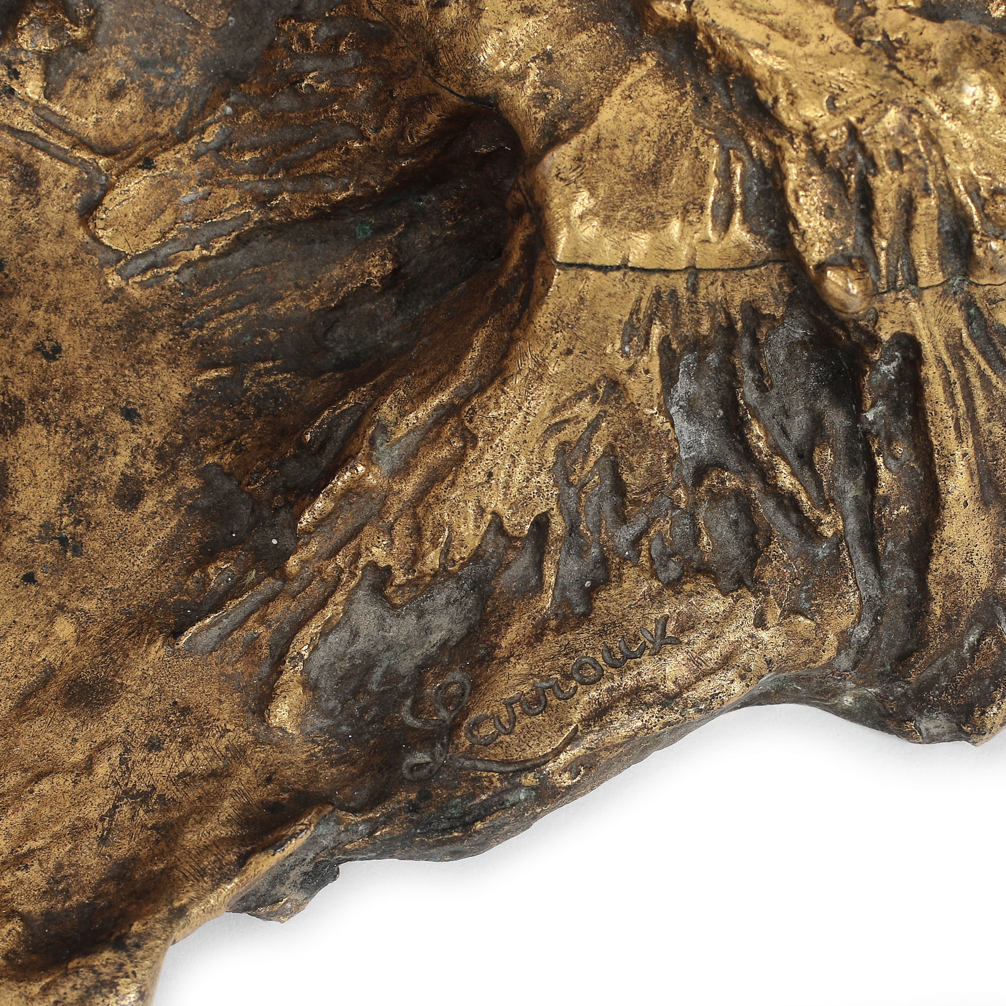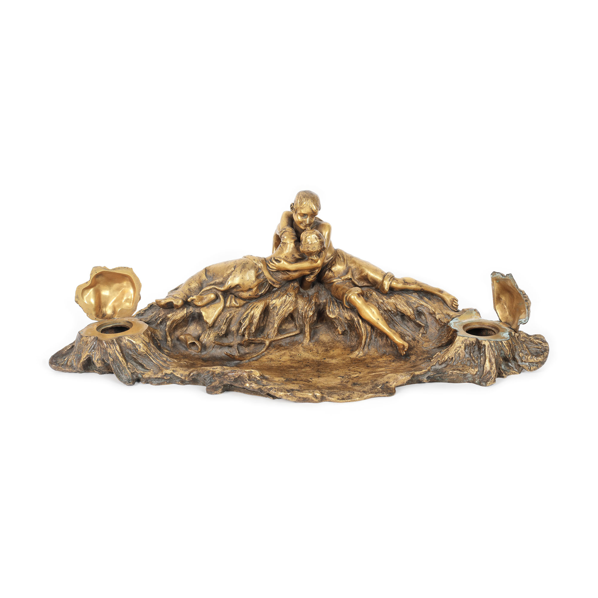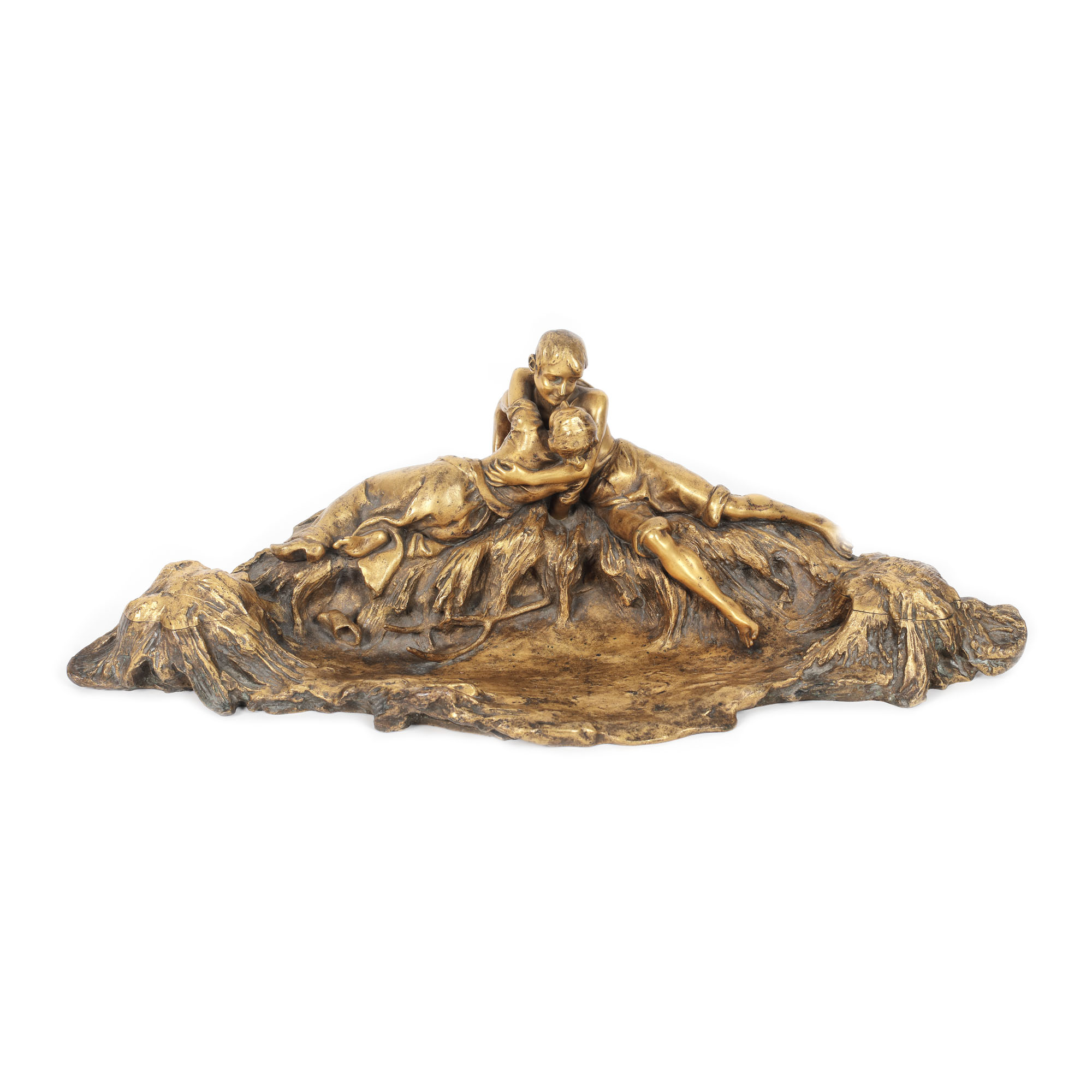 63. ”Sărutul”- encrieră Antonin Larroux, din bronz doré, decorată cu un cuplu îmbrățișat, cca. 1900