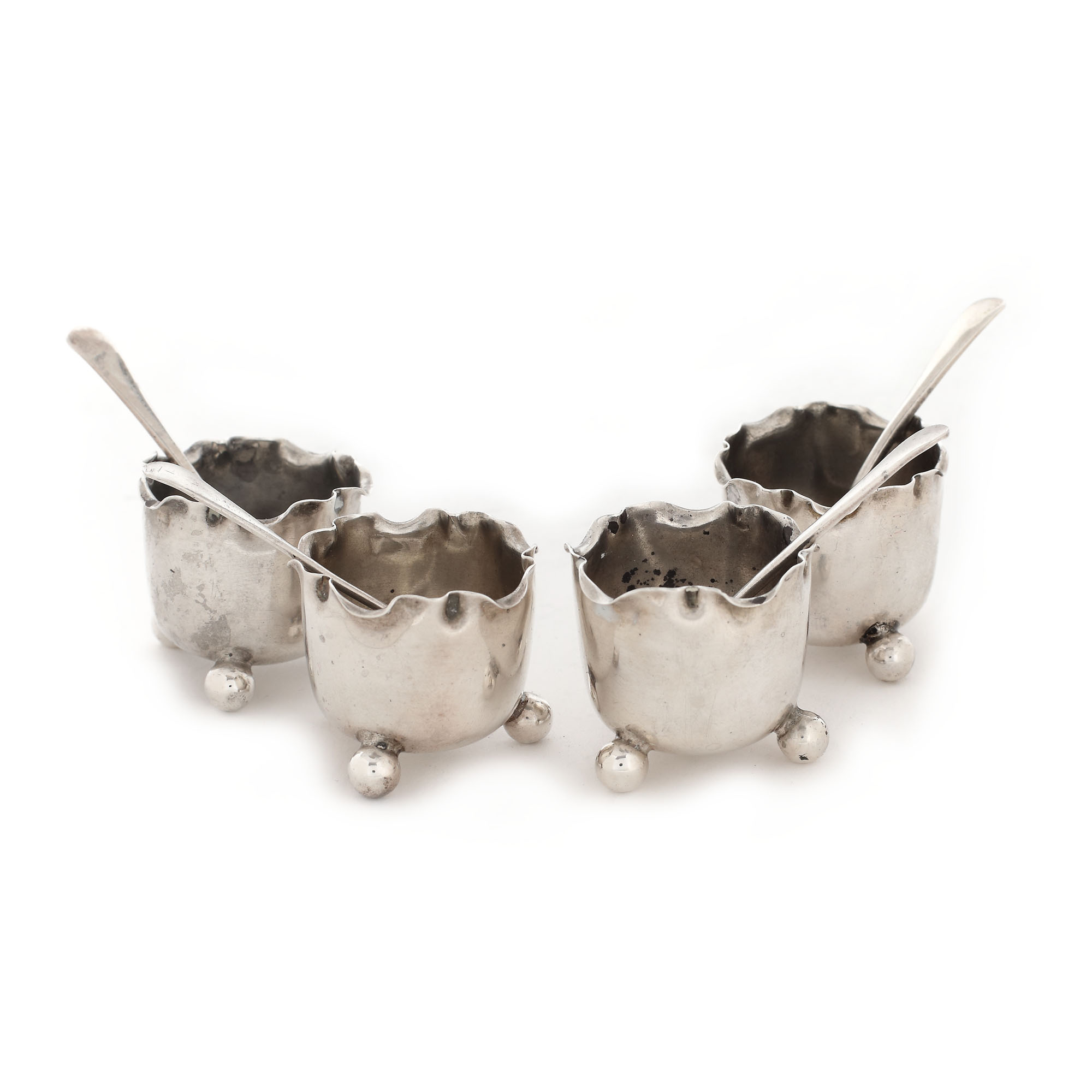 91. Set din argint Charles S. Green & Co, format din recipiente pentru condimente și lingurițe, cca. 1905, în cutia originală