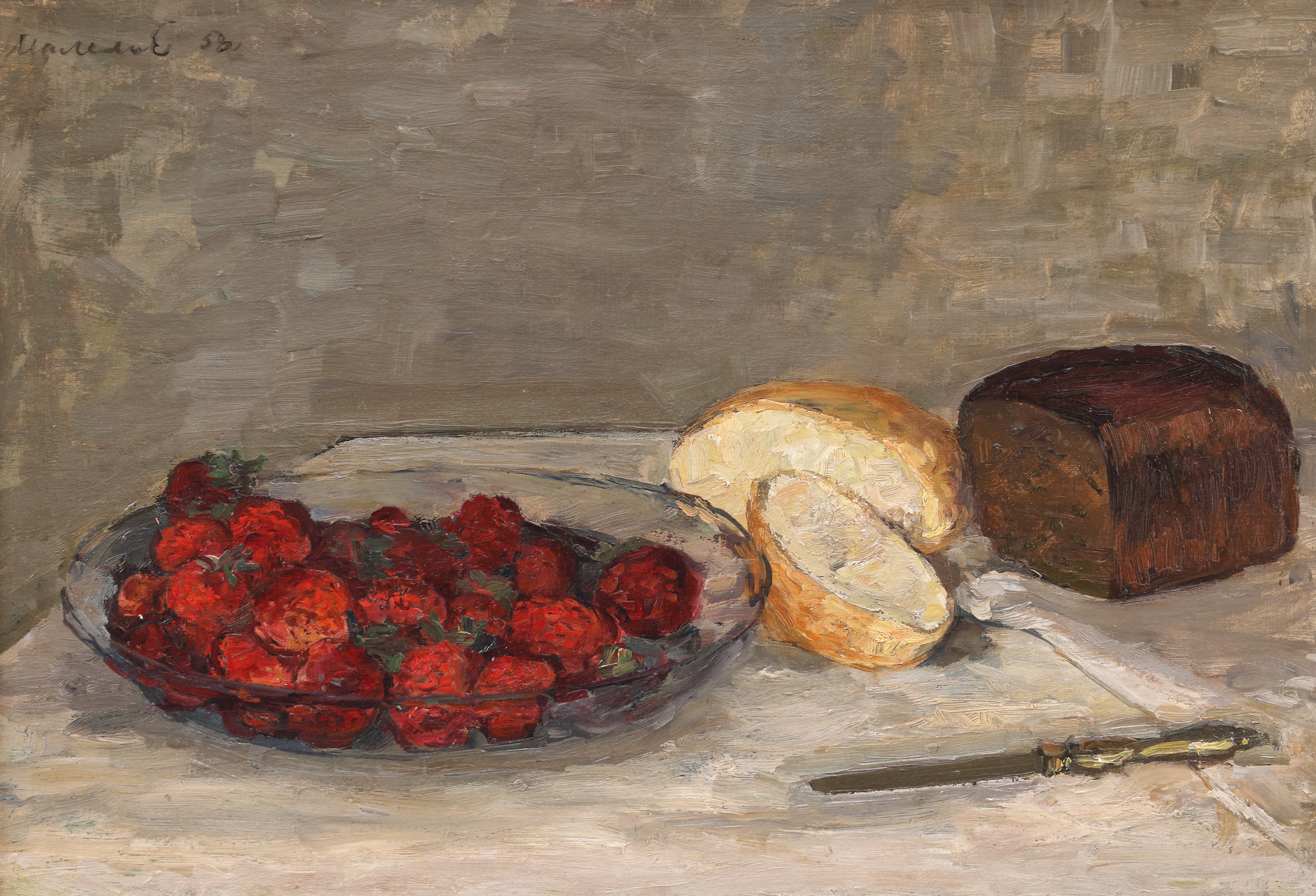 62. Natură statică cu pâine și farfurie cu căpșuni [1953]