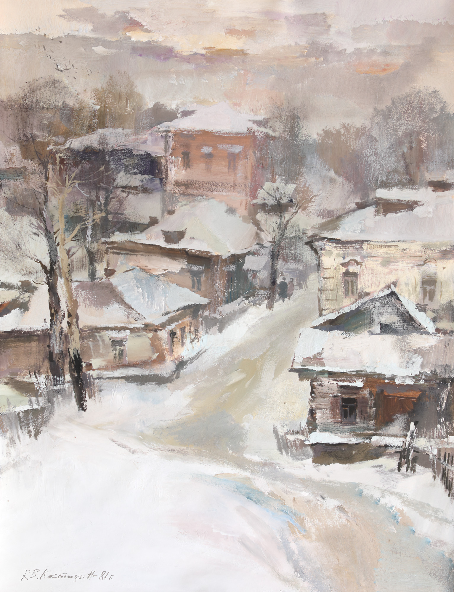 semnat și datat stânga jos, cu brun, ”V. Kostitsin, (19)81”