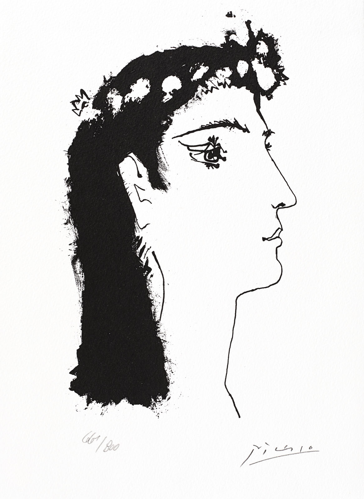 semnat dreapta jos, în placă, "Picasso"; numerotat stânga jos, în creion, "118/800"