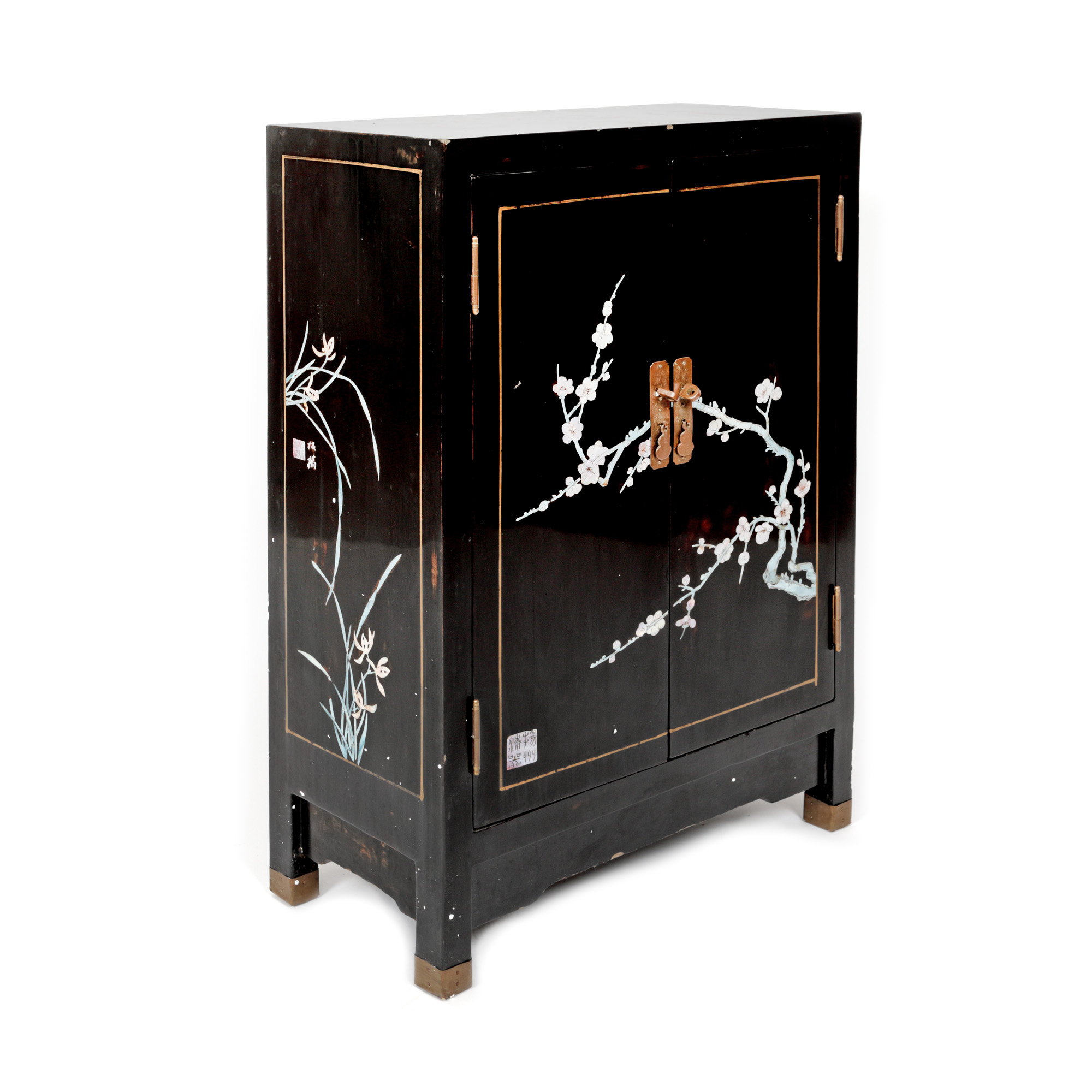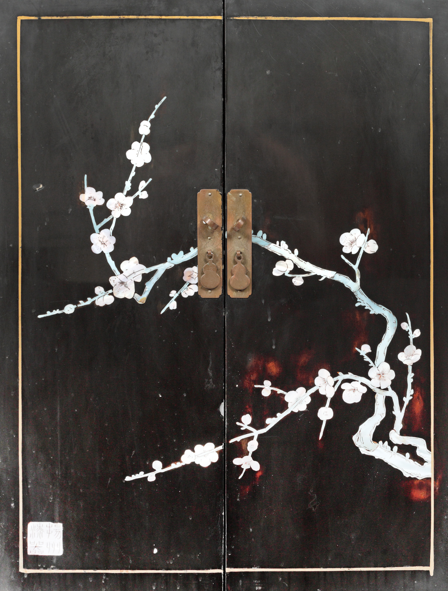85. Cabinet din lac în stil Coromandel, decorat cu crenguțe și flori de cireș din sidef, China, mijlocul sec. XX
