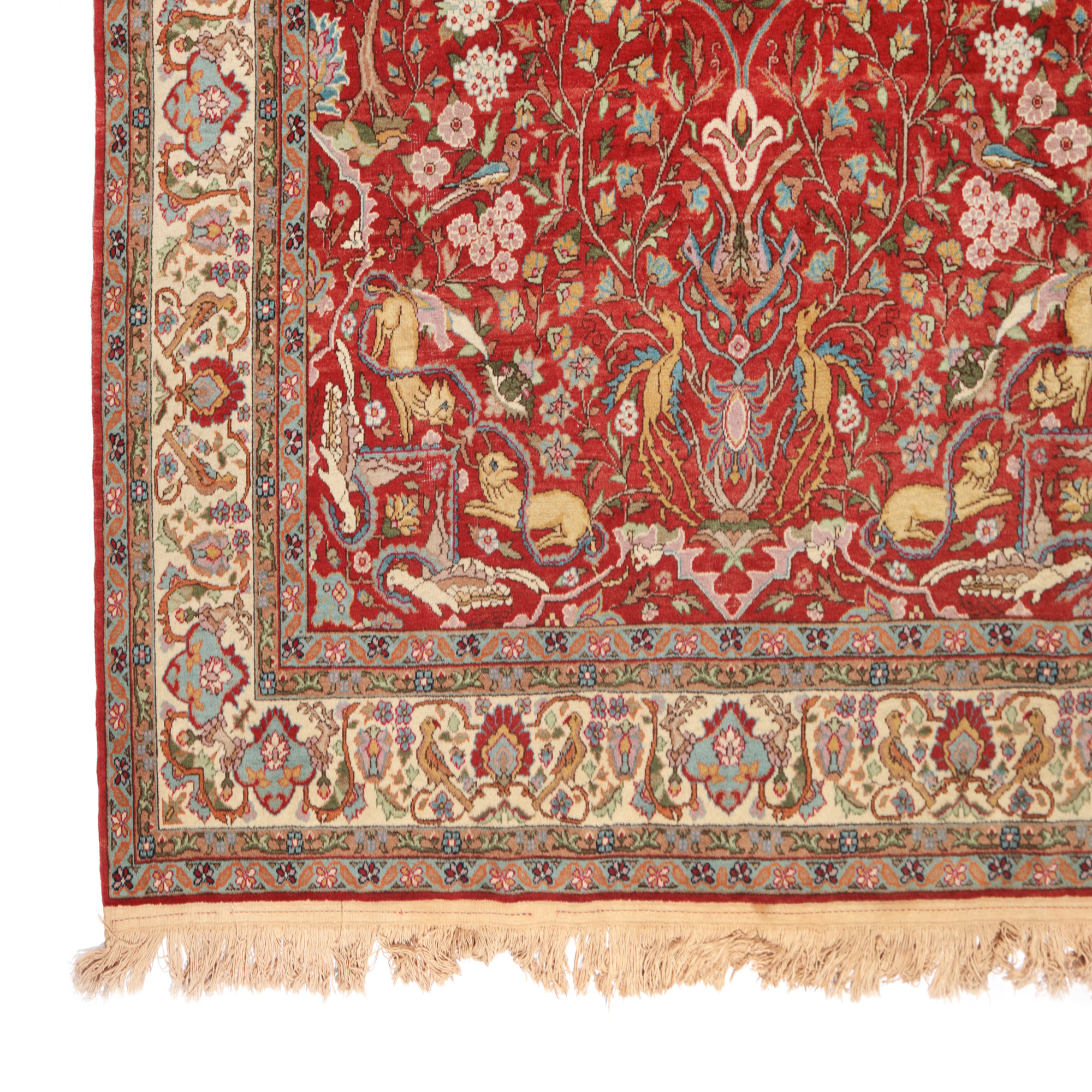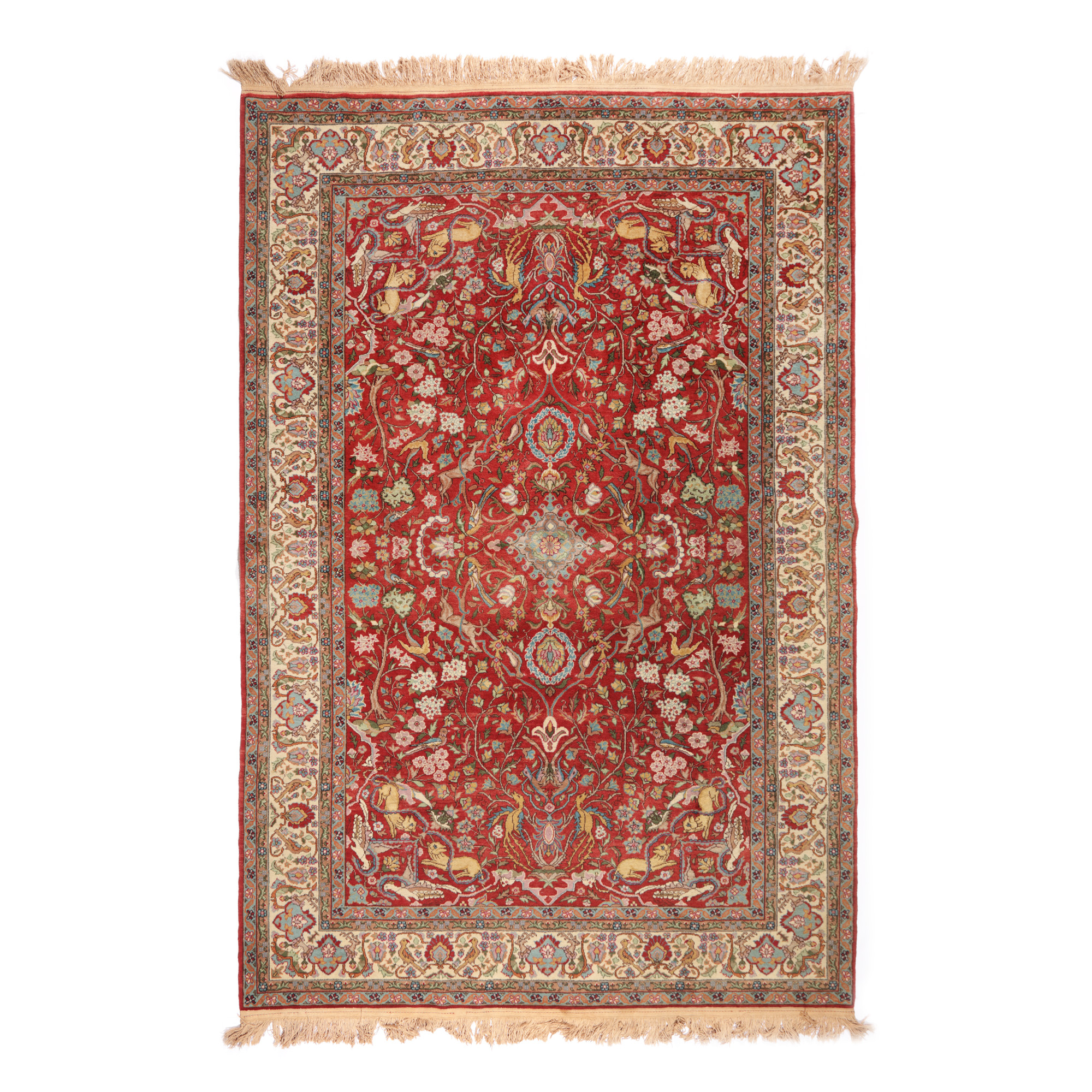 77. Covor Tabriz din lână, decorat cu medalioane și motive zoomorfe specifice zonei, cca. 1950