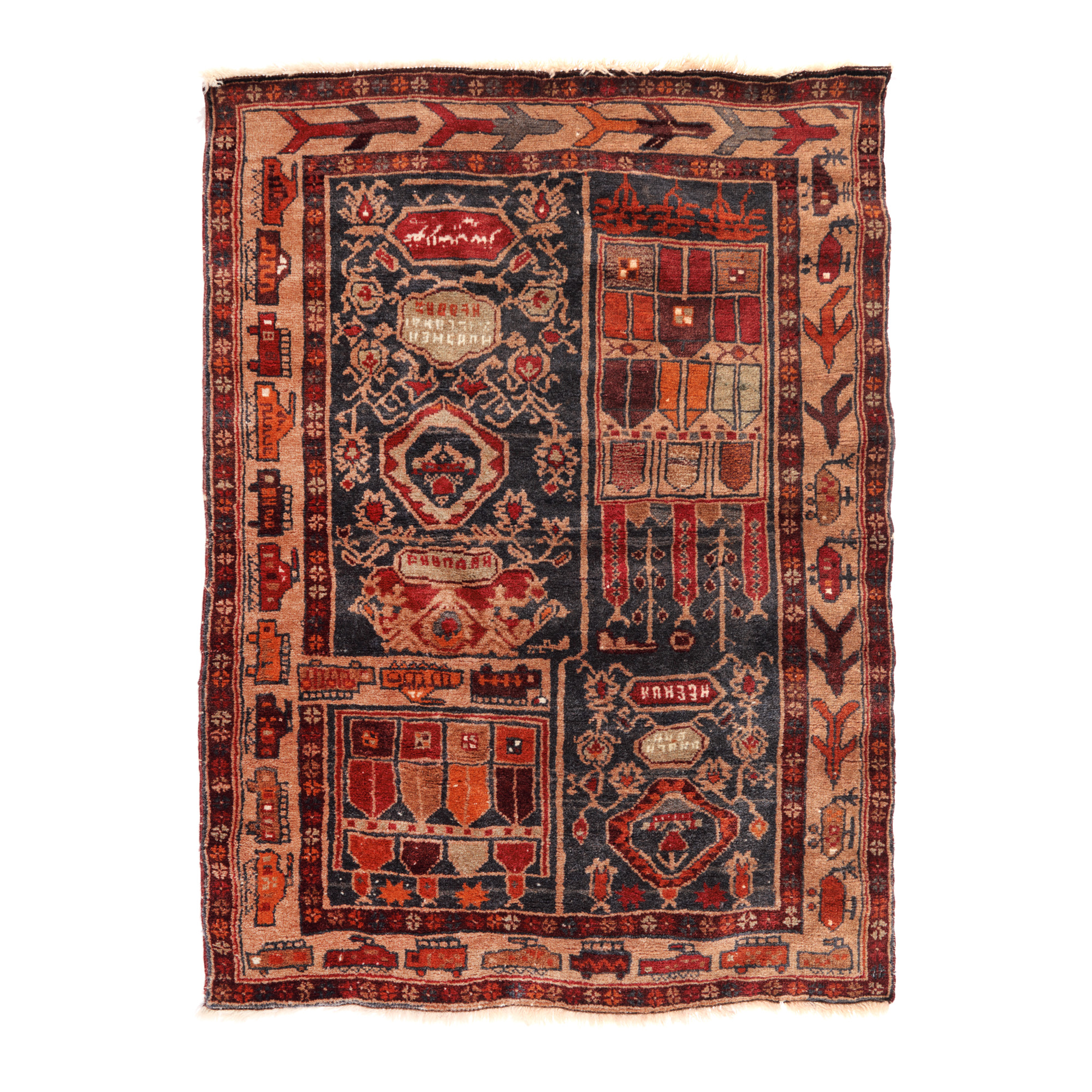 54. Interesant covor de război, decorat cu avioane militare, elicoptere și tancuri, Afganistan, cca 1980