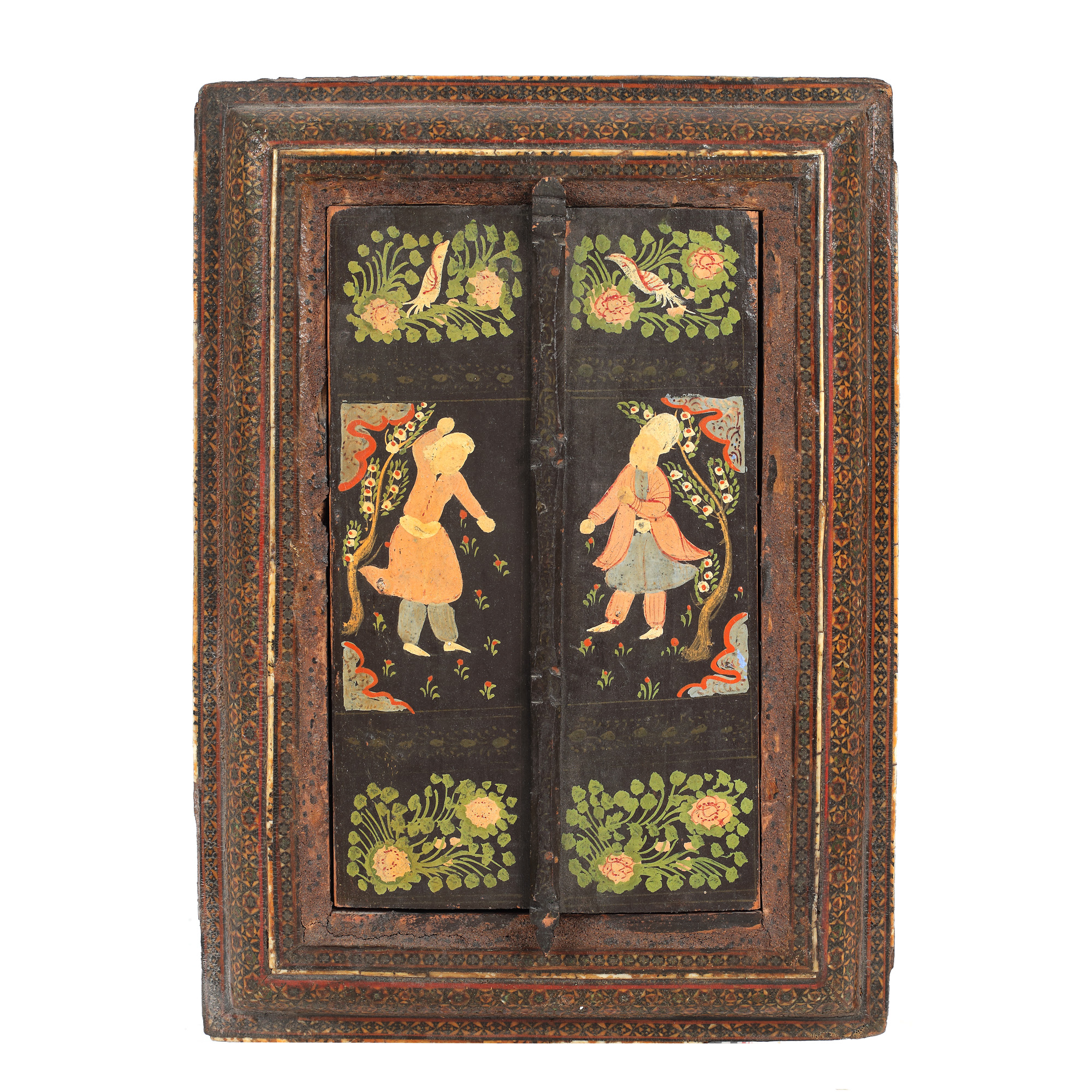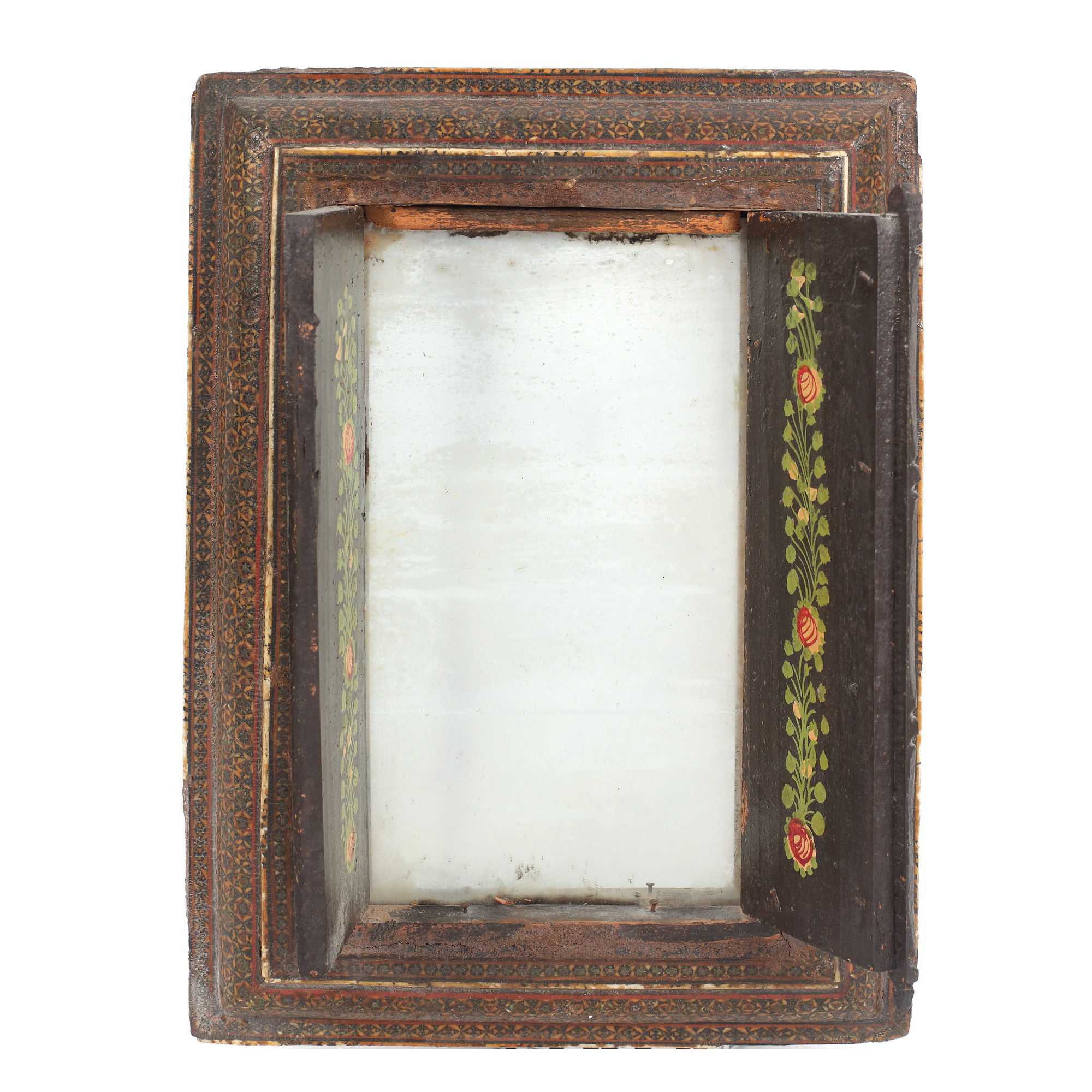 57. Oglindă din lemn sculptat și pictat, decorată cu motive tradiționale, India, începutul sec. XX
