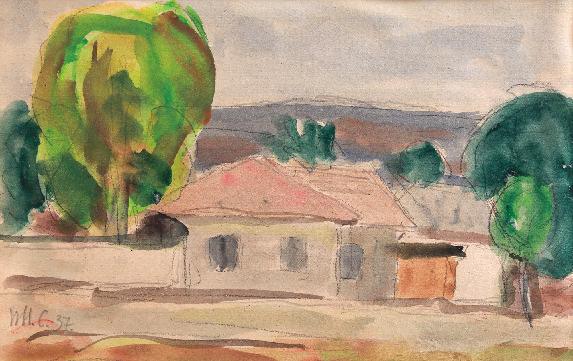 semnat și datat stânga jos, în creion, ”H.H.C, (19)37”