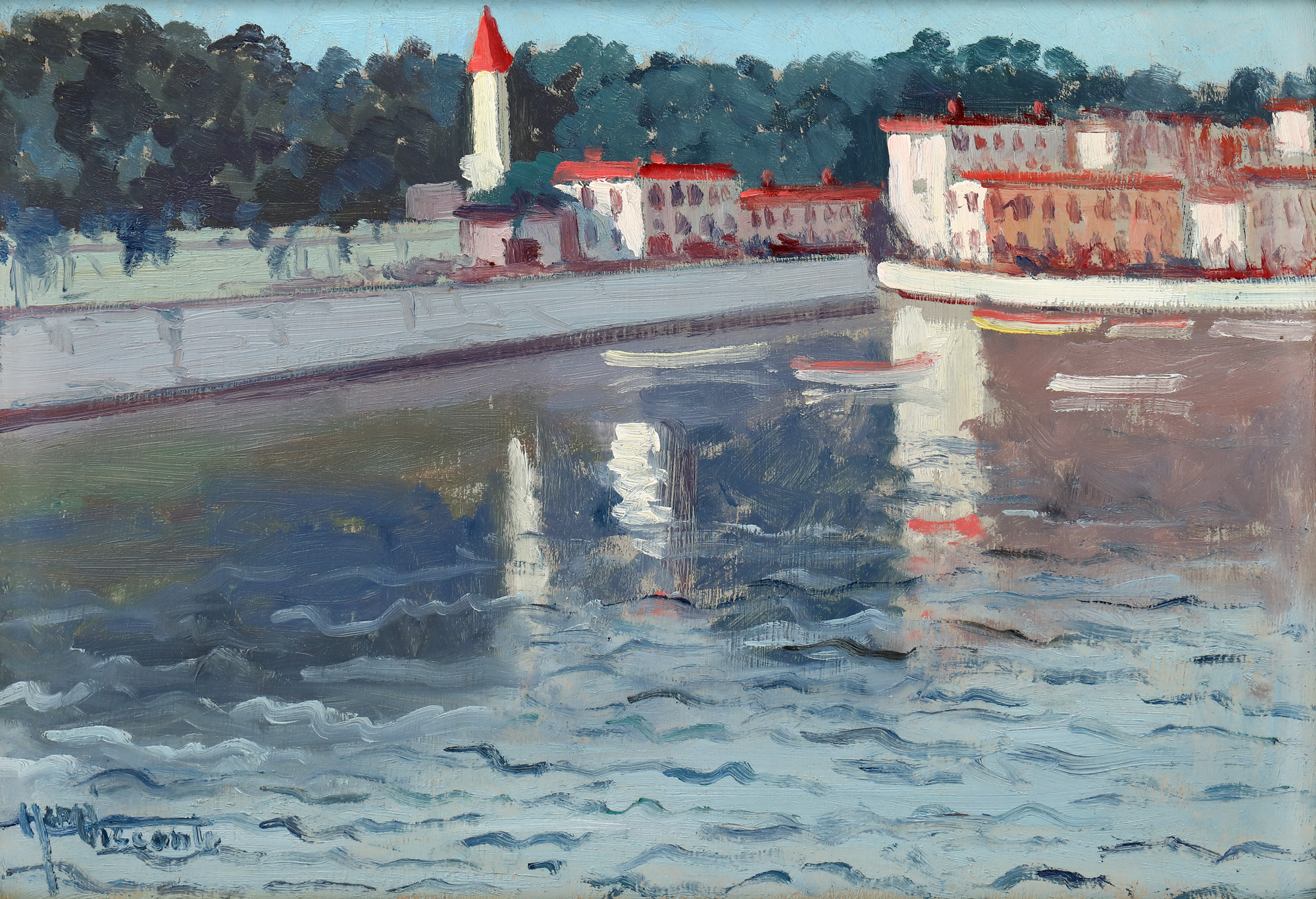 semnat stânga jos, cu albastru, ”Henri Visconte”