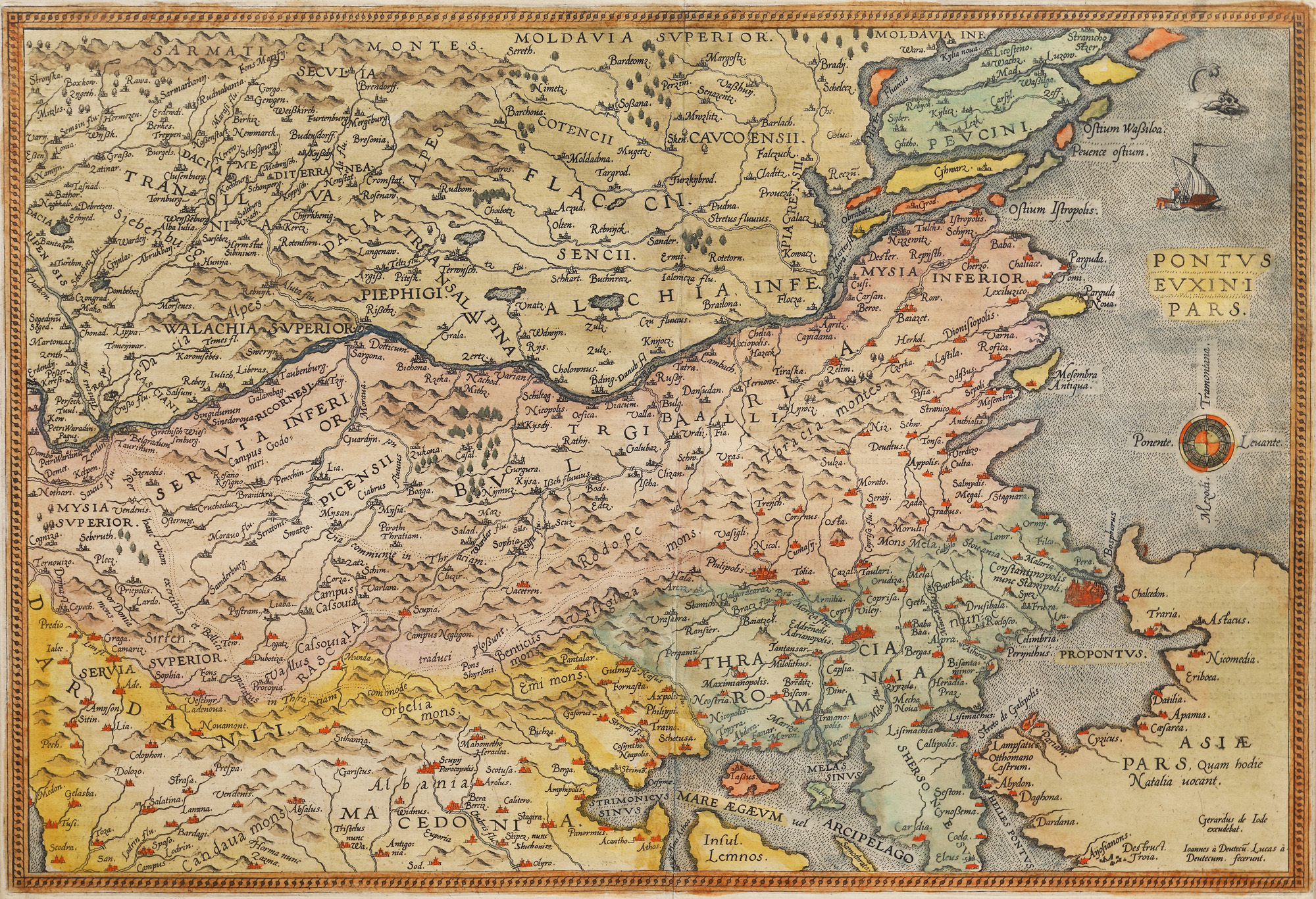 57. Hartă ”Cursul inferior al Dunării”, de Gerard de Jode, Antwerp, 1578, piesă foarte rară, de colecție