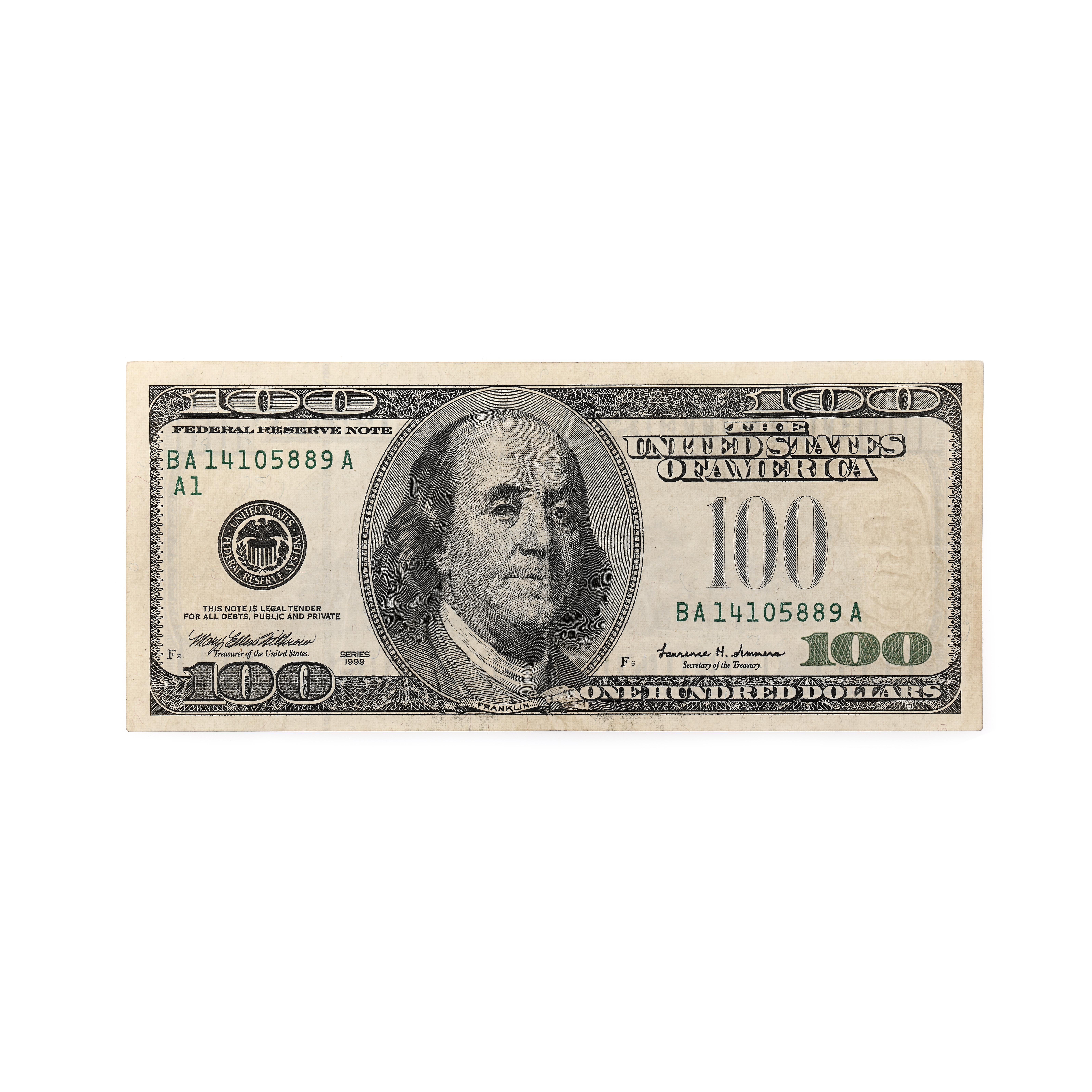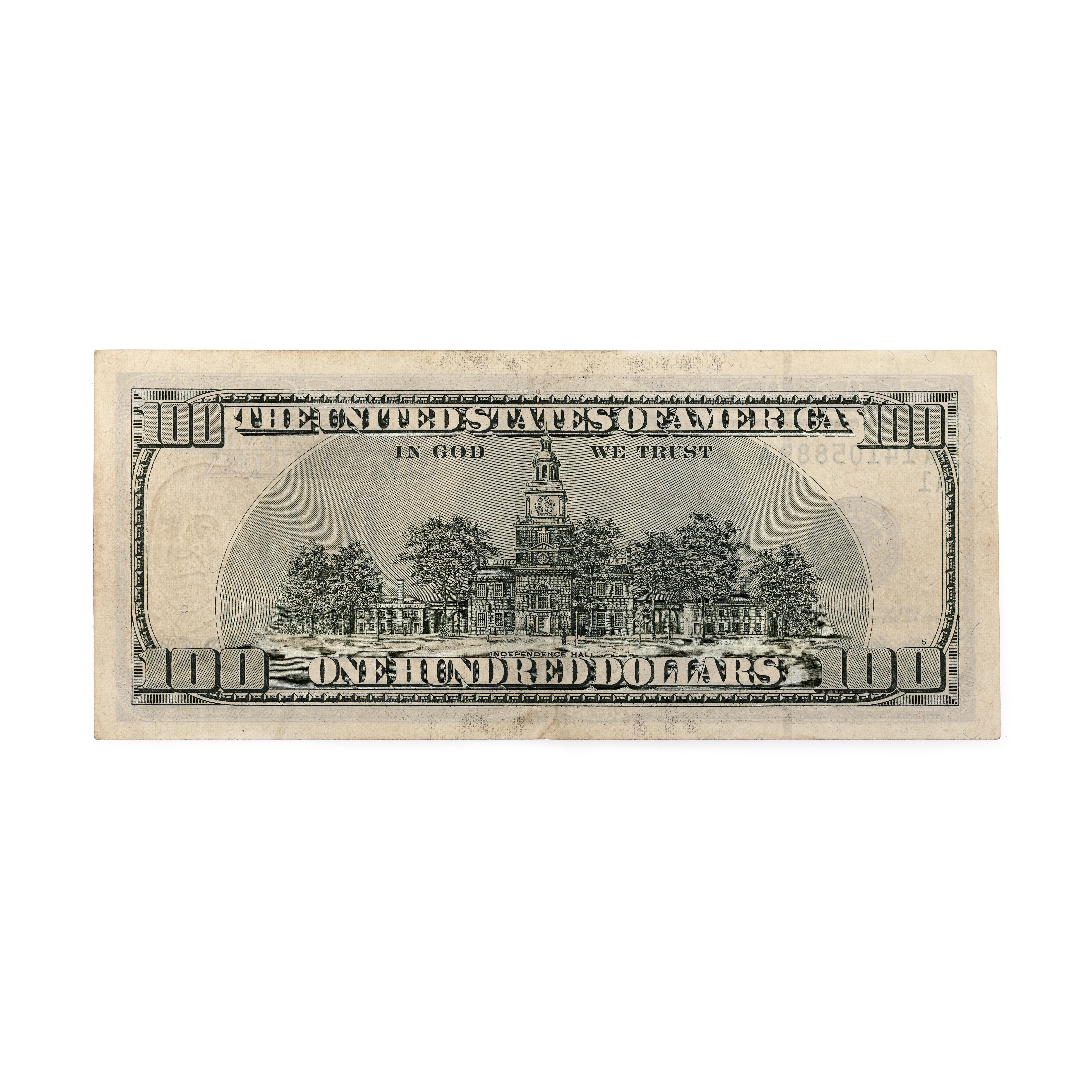 108. Interesantă bancnotă de $100, cu defect de imprimerie - lipsa sigiliului trezoreriei