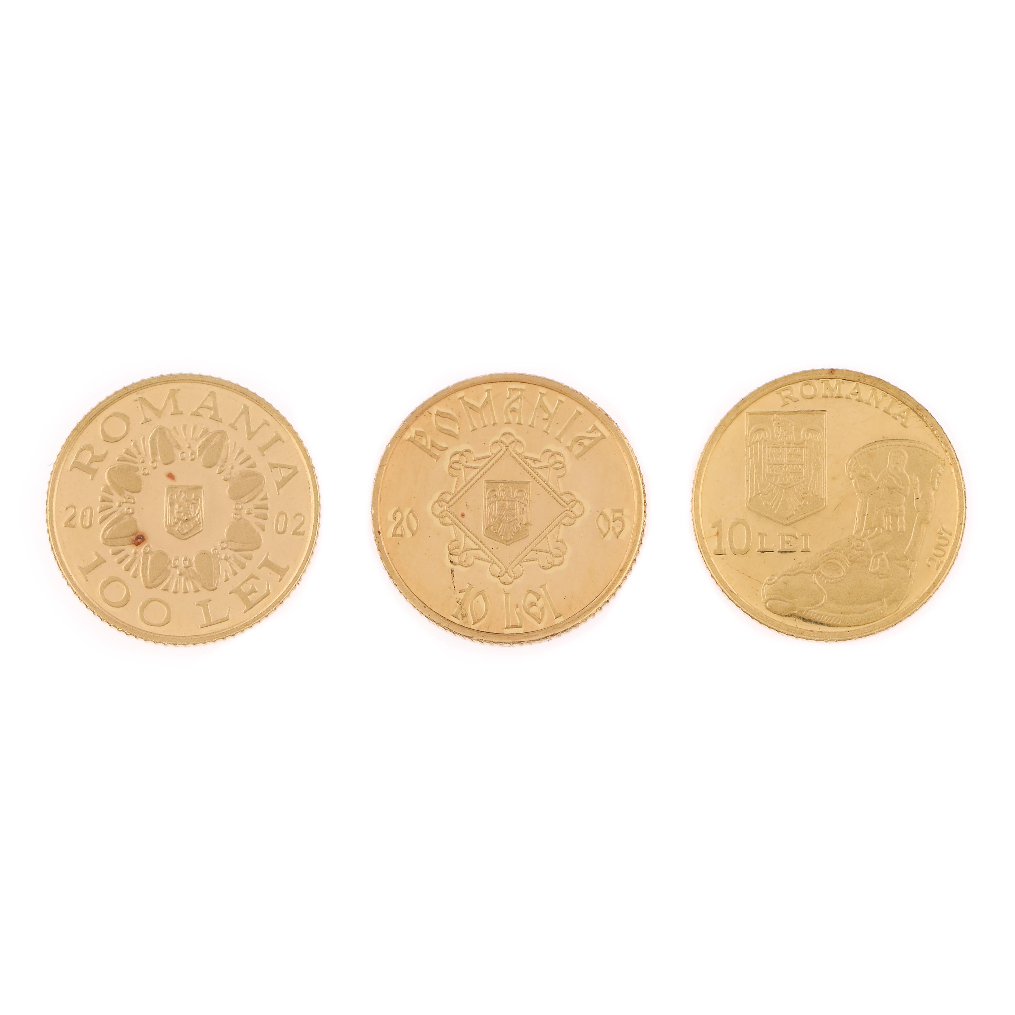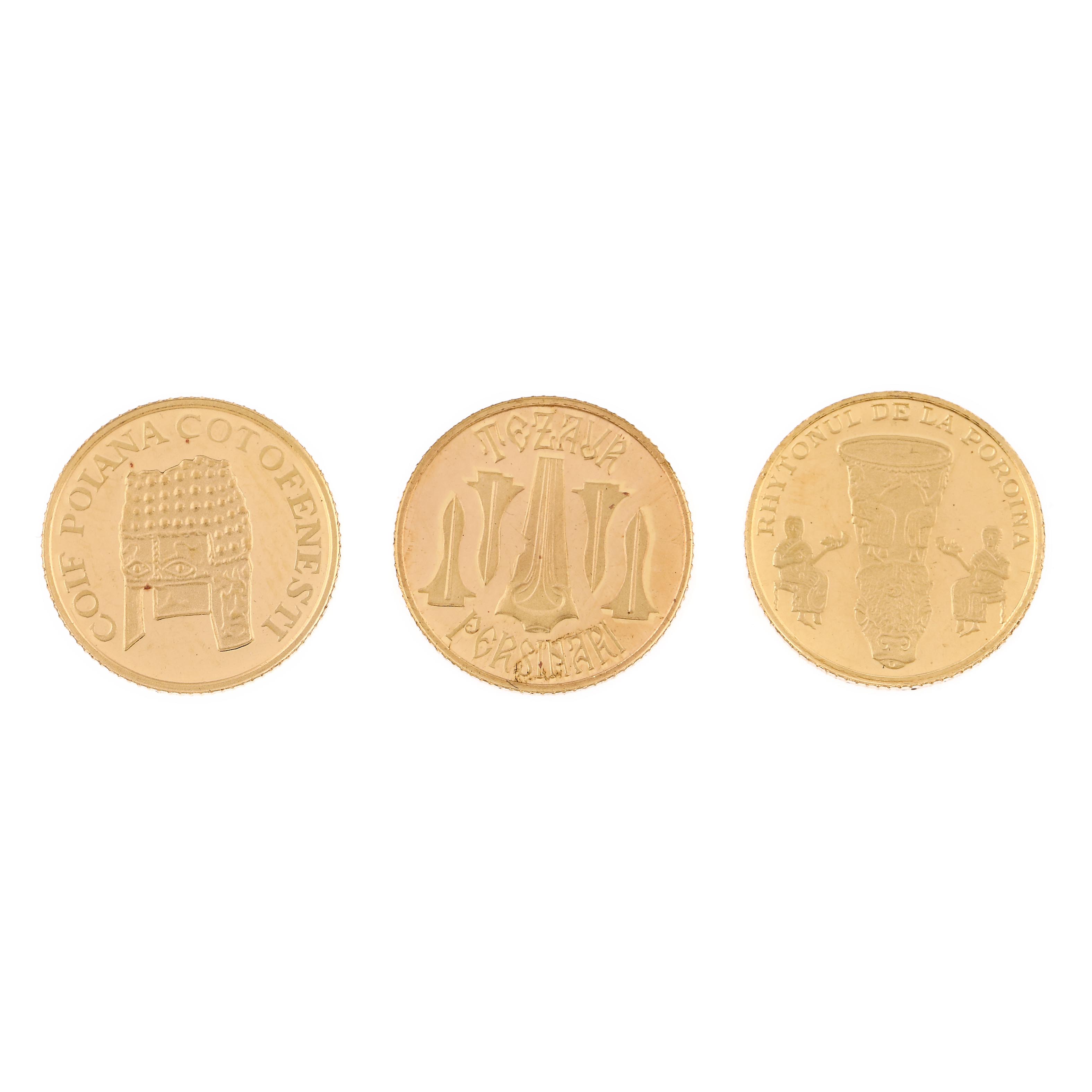 82. Lot format din 3 monede din aur, emisiuni jubiliare emise de BNR - seria Istoria Aurului
