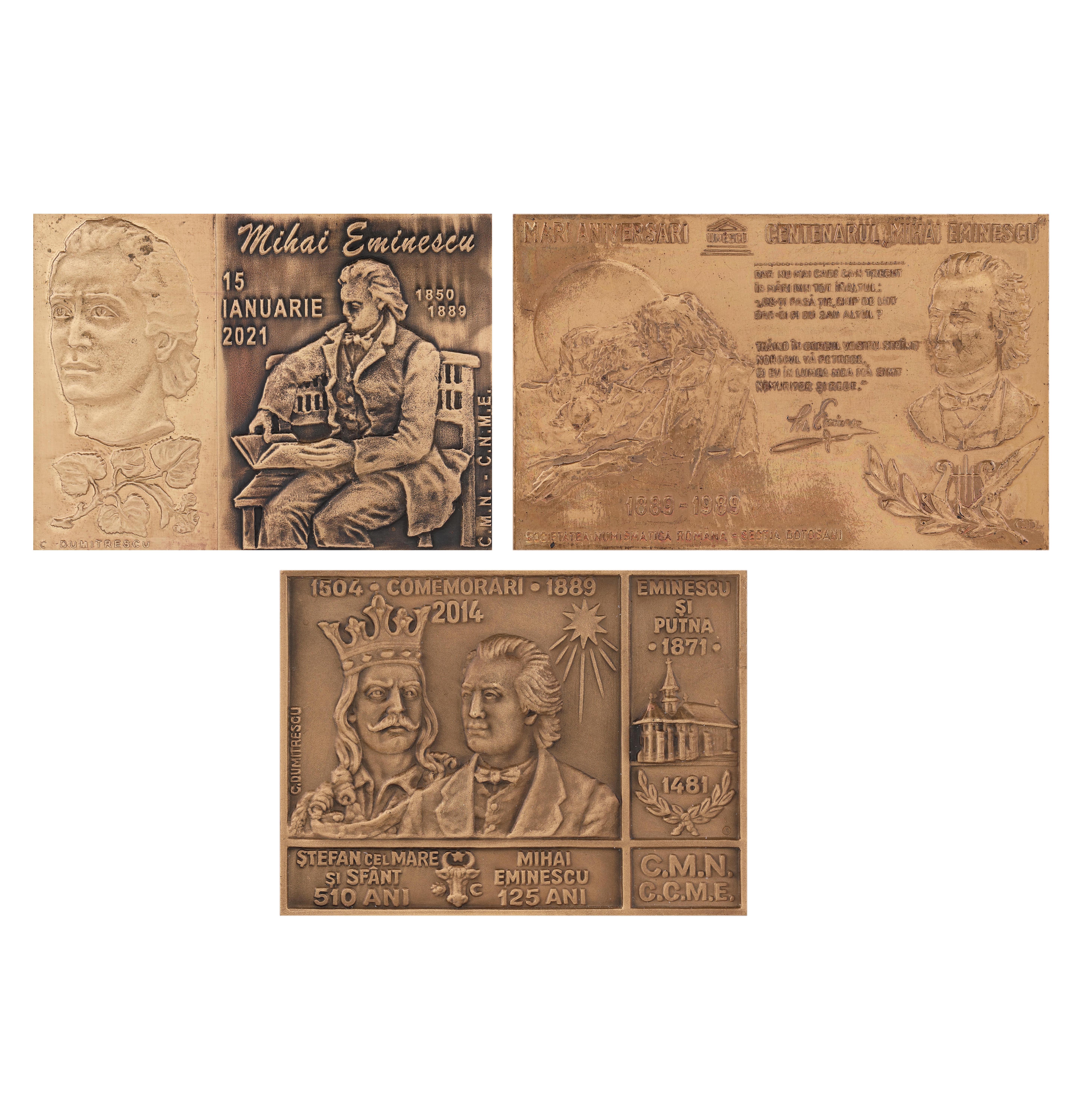 179. Lot format din 3 plachete omagiale cu Mihai Eminescu și Ștefan cel Mare