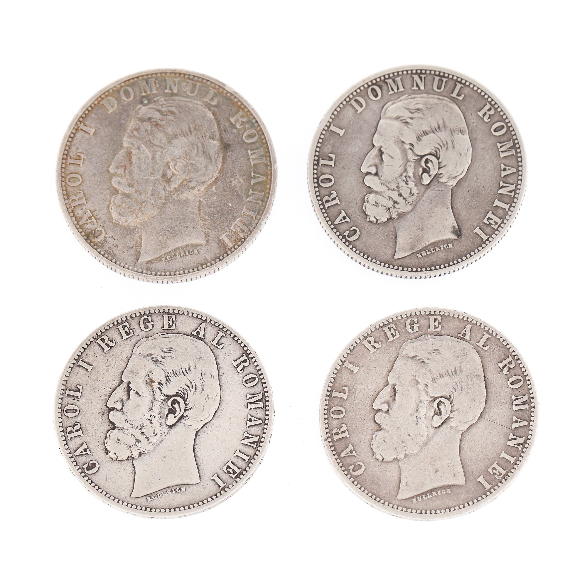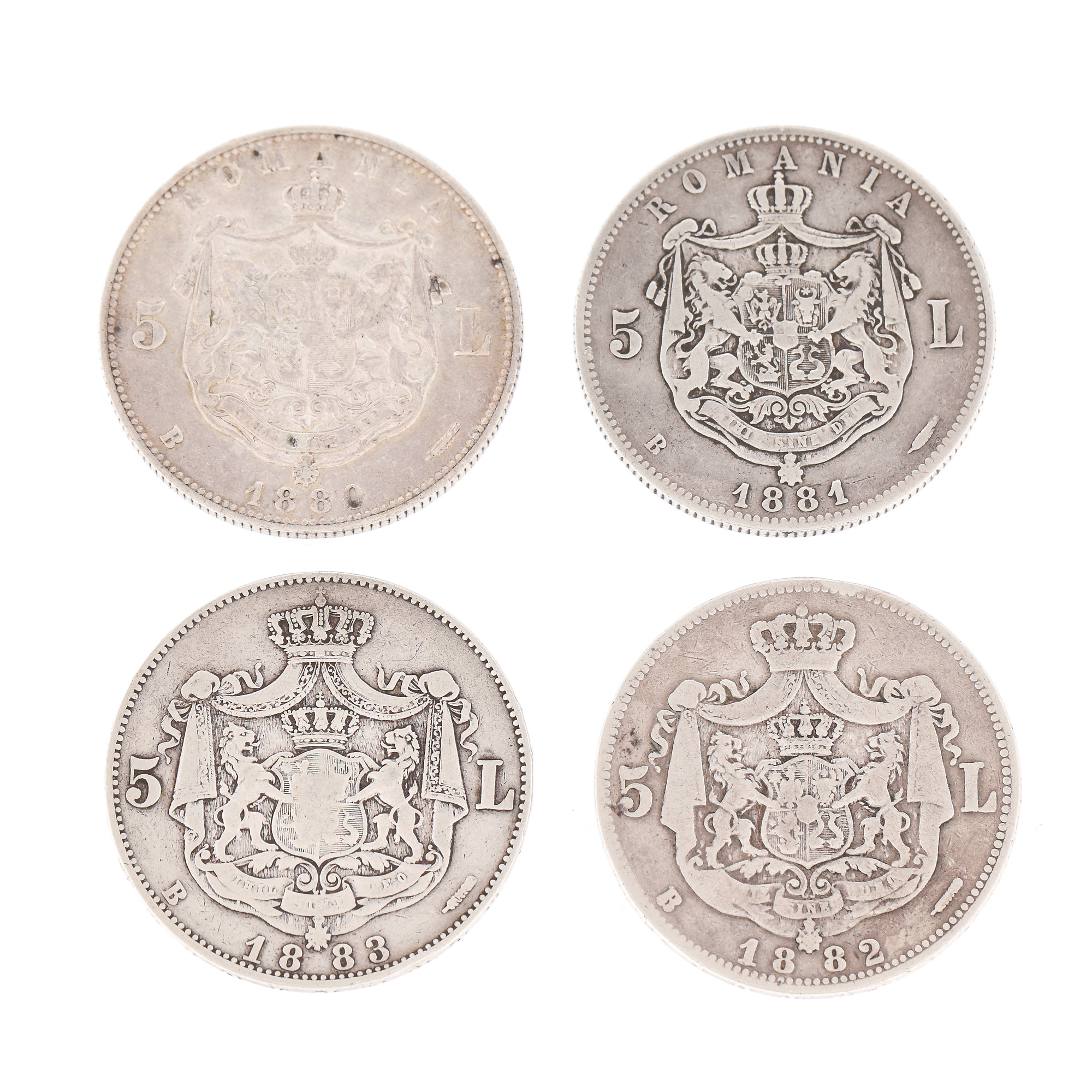 97. Lot format din 4 monede de 5 Lei, din ani consecutivi, 1880-1883, argint