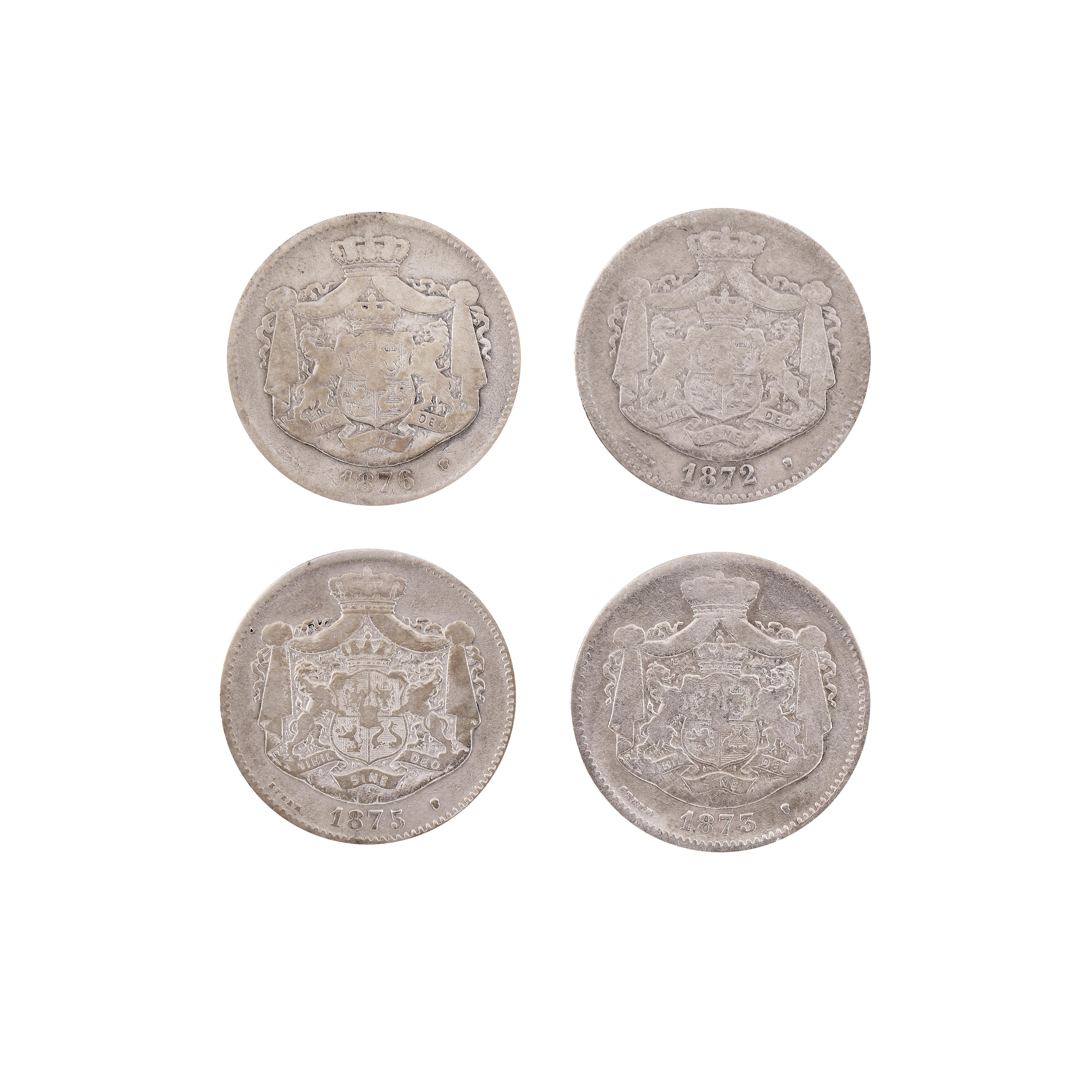 102. Lot format din 4 monede din argint, 2 Lei 1872, 1873, 1875, 1876