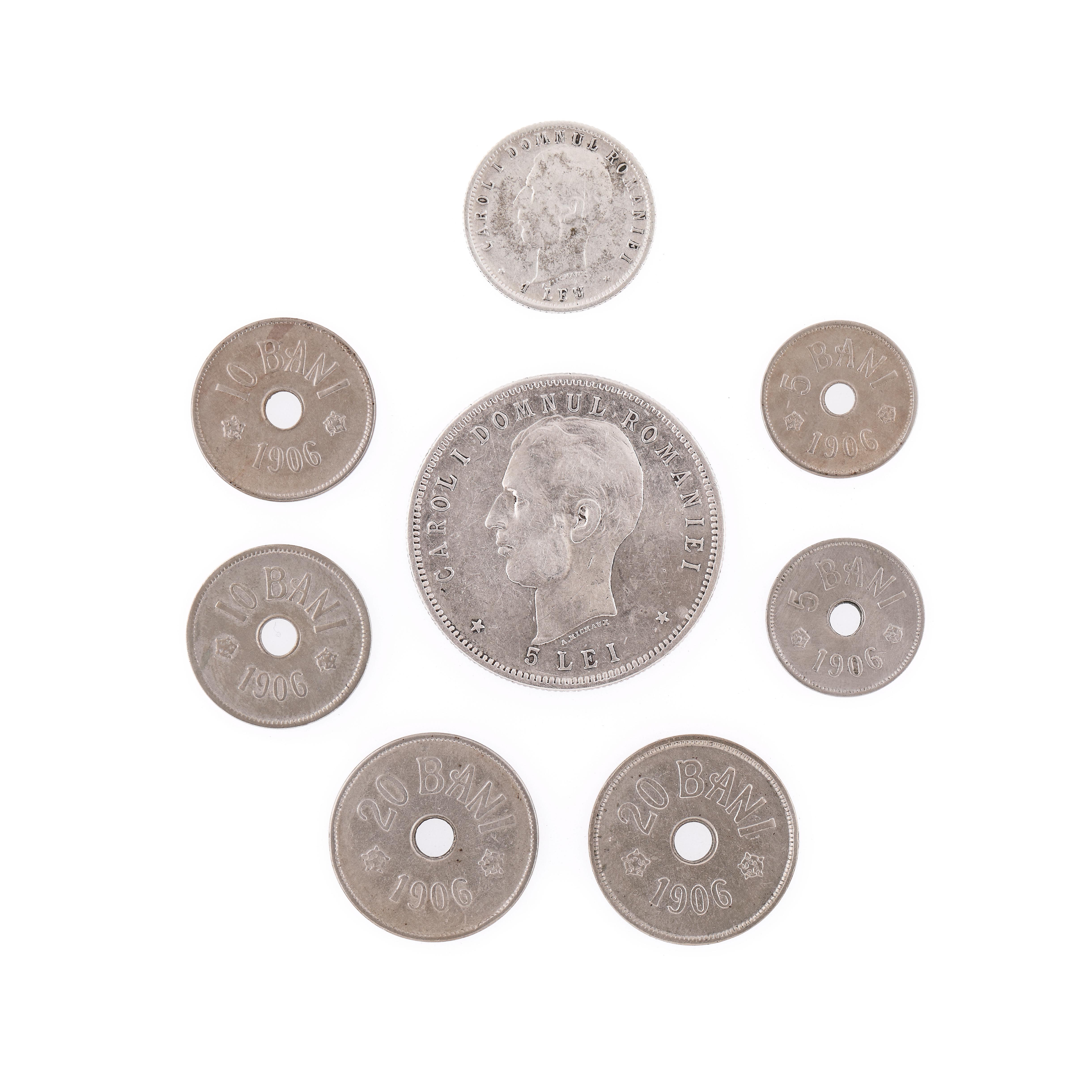 1 leu 1906 - ARGINT, monetăria din Bruxelles, Belgia – gravor Alfons Michaux 5 lei 1906 - ARGINT, monetăria din Bruxelles, Belgia – gravor Alfons Michaux 5 bani 1906 J, monetăria Hamburg, Germania – gravor Anton Scharff 5 bani 1906, monetăria Bruxelles, Belgia – gravor Anton Scharff 10 bani 1906 J, monetăria Hamburg, Germania – gravor Anton Scharff 10 bani 1906, monetăria Bruxelles, Belgia – gravor Anton Scharff 20 bani 1906 J, monetăria Hamburg, Germania – gravor Anton Scharff 20 bani 1906, monetăria Bruxelles, Belgia – gravor Anton Scharff