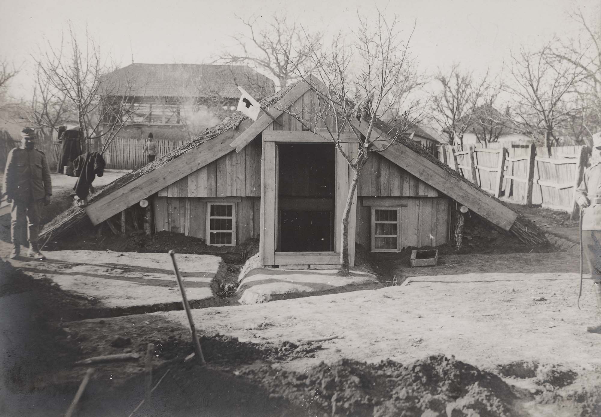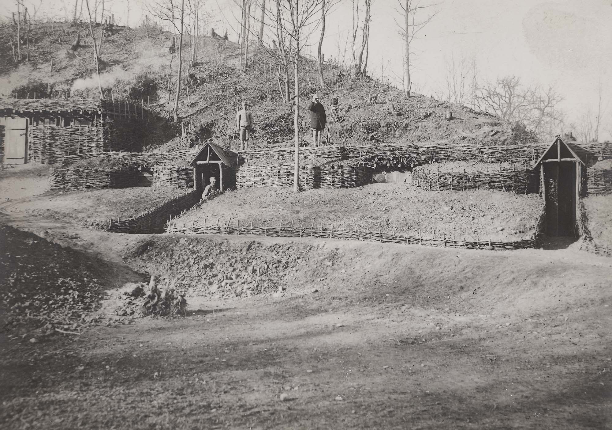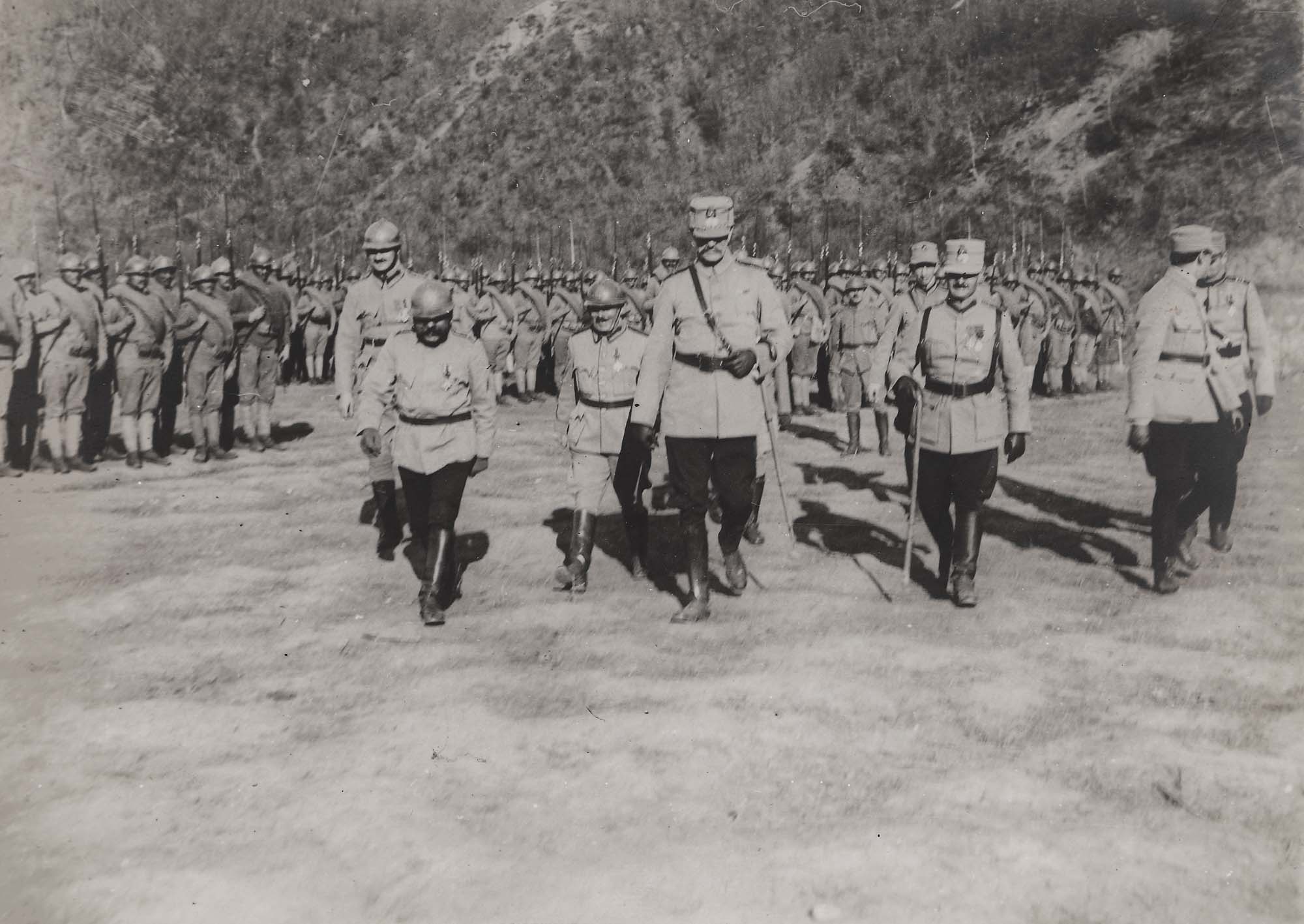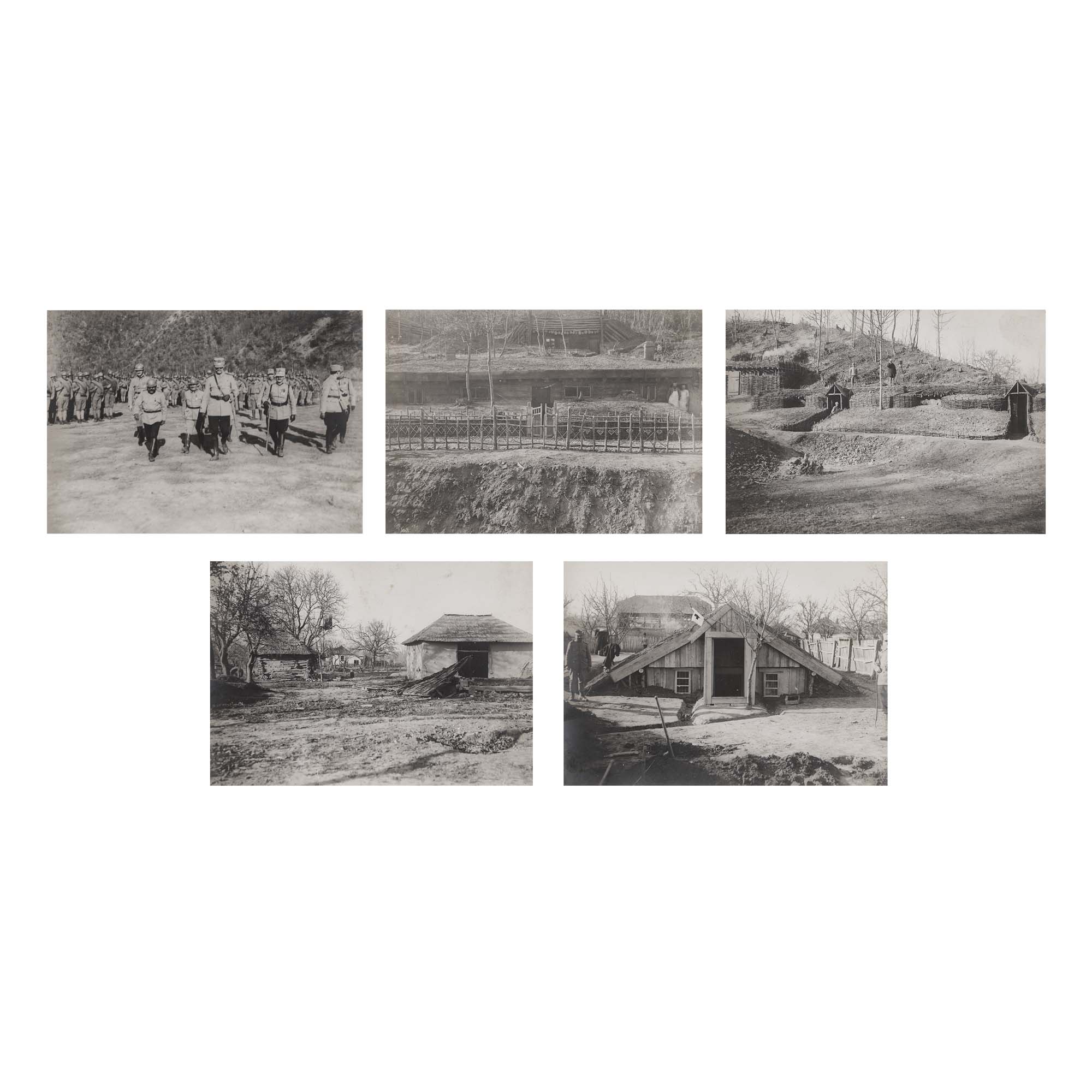 145A. Lot format din cinci fotografii ilustrând inspectarea trupelor și a fortificațiilor de pe linia frontului de către generalul Constantin Iancovescu, ministrul războiului, Mărășești, 1917