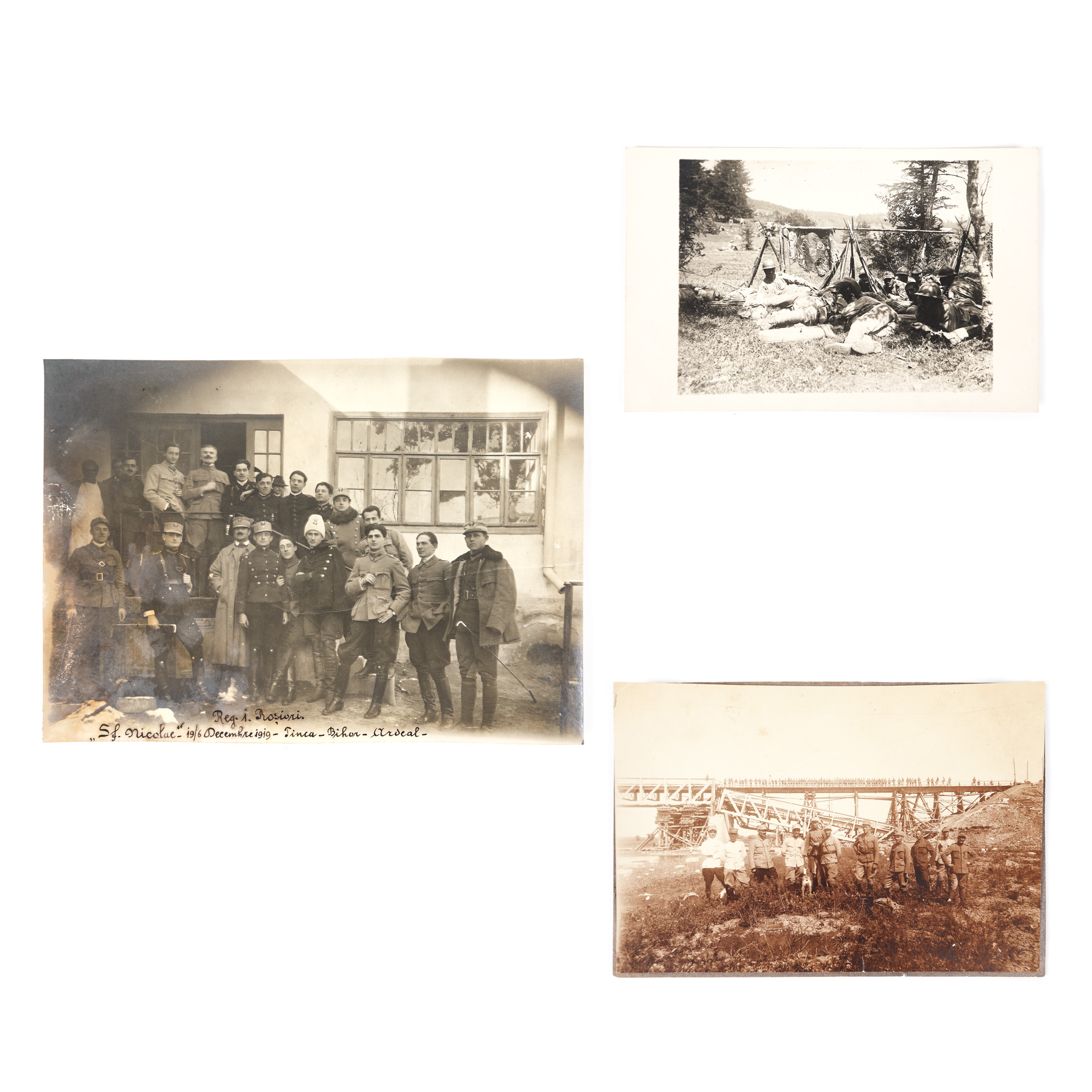 155. Lot format din trei cărți poștale ilustrând trupe române în timpul campaniilor din Primul Război Mondial