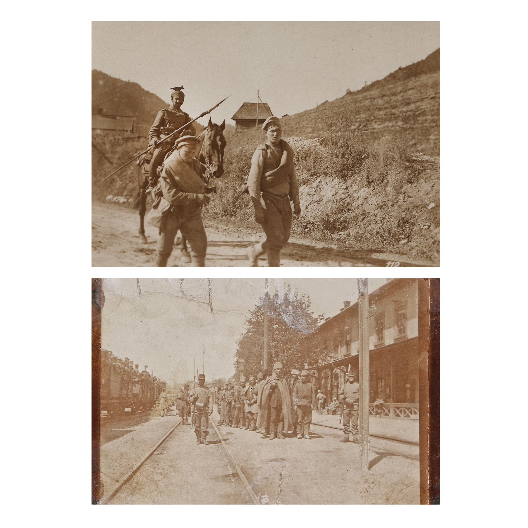 153. Pereche de fotografii ilustrând prizonieri ruși capturați de trupele austro-ungare în timpul Primului Război Mondial
