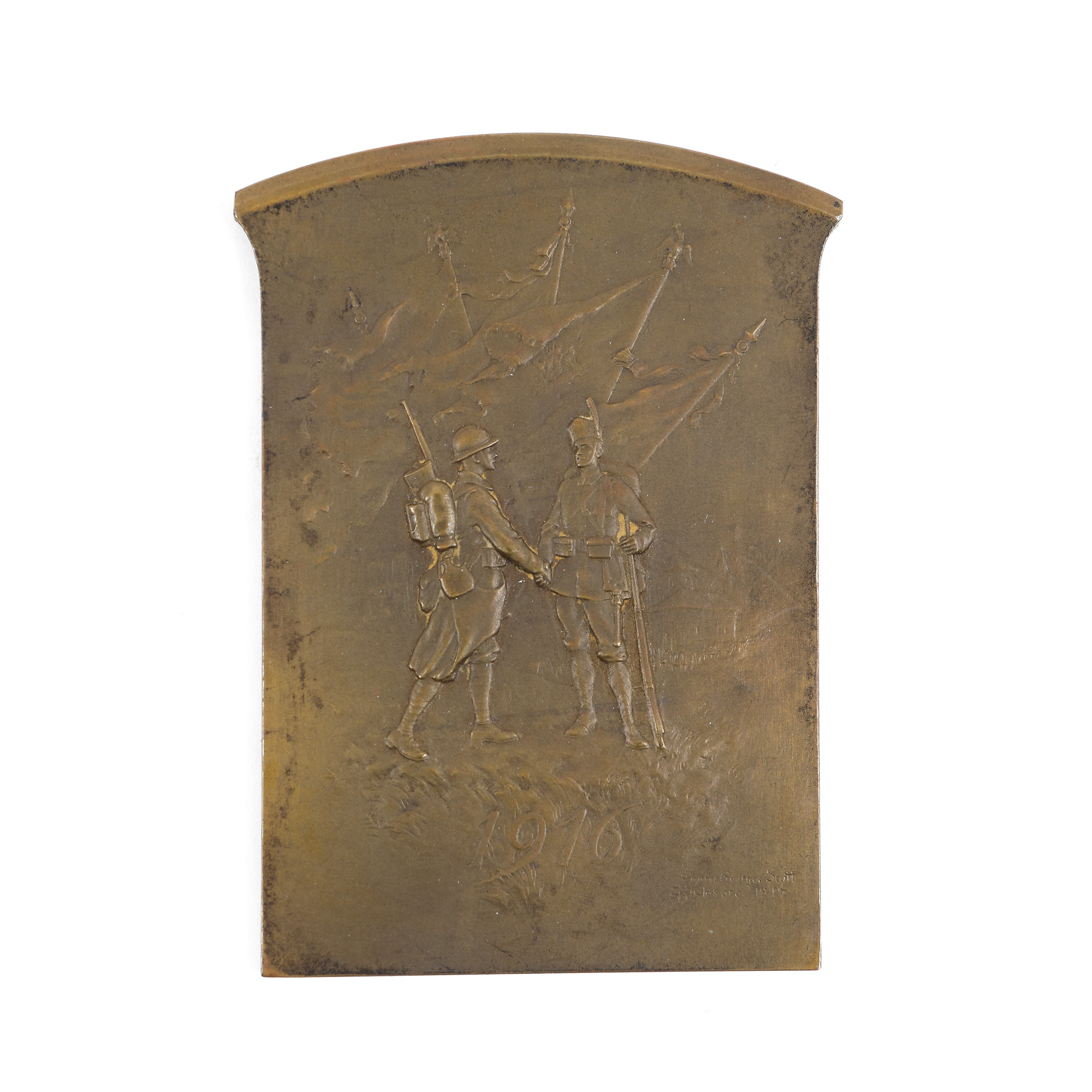 191. Plachetă "Alianţa româno-franceză", sculptată de Henri Delaspré după desenul pictorului Georges Scott, 1917