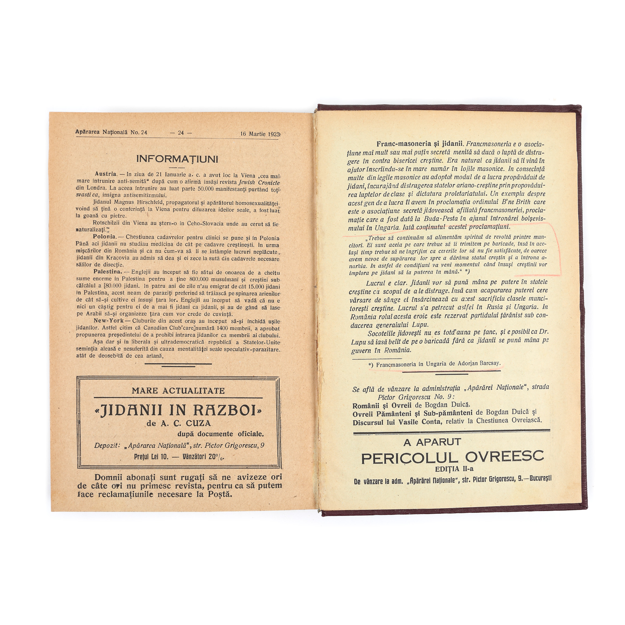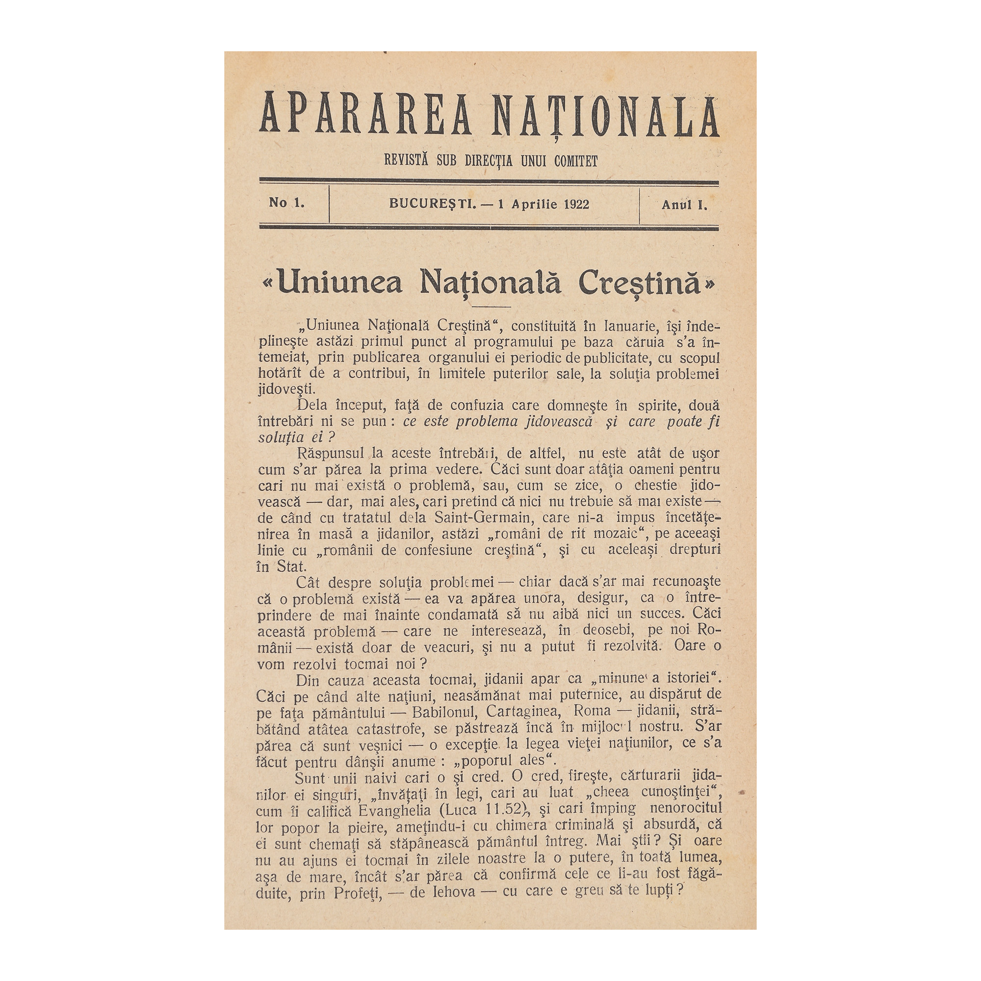 232. Revista ”Apărarea Națională”, nr. 1, anul I, București, 1922
