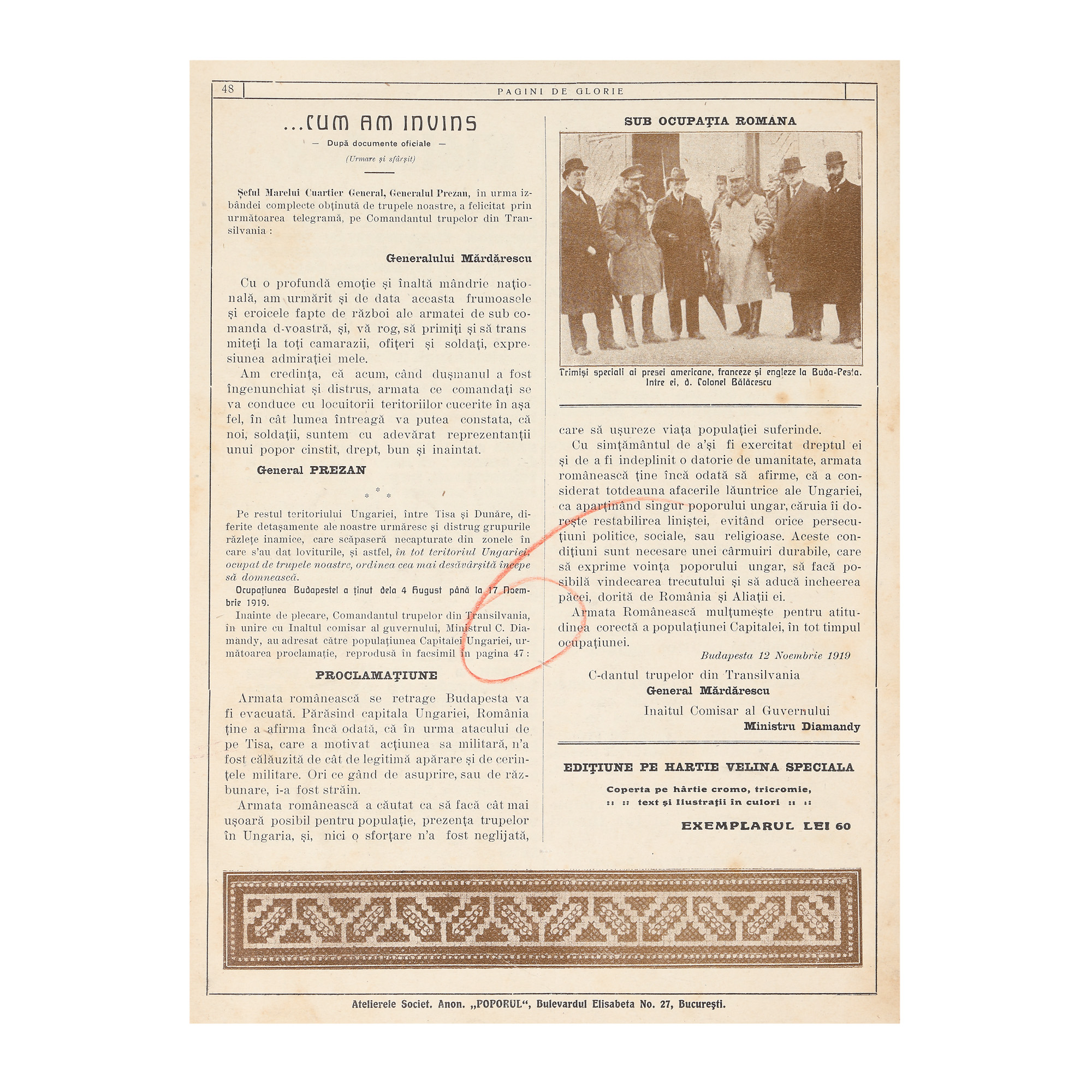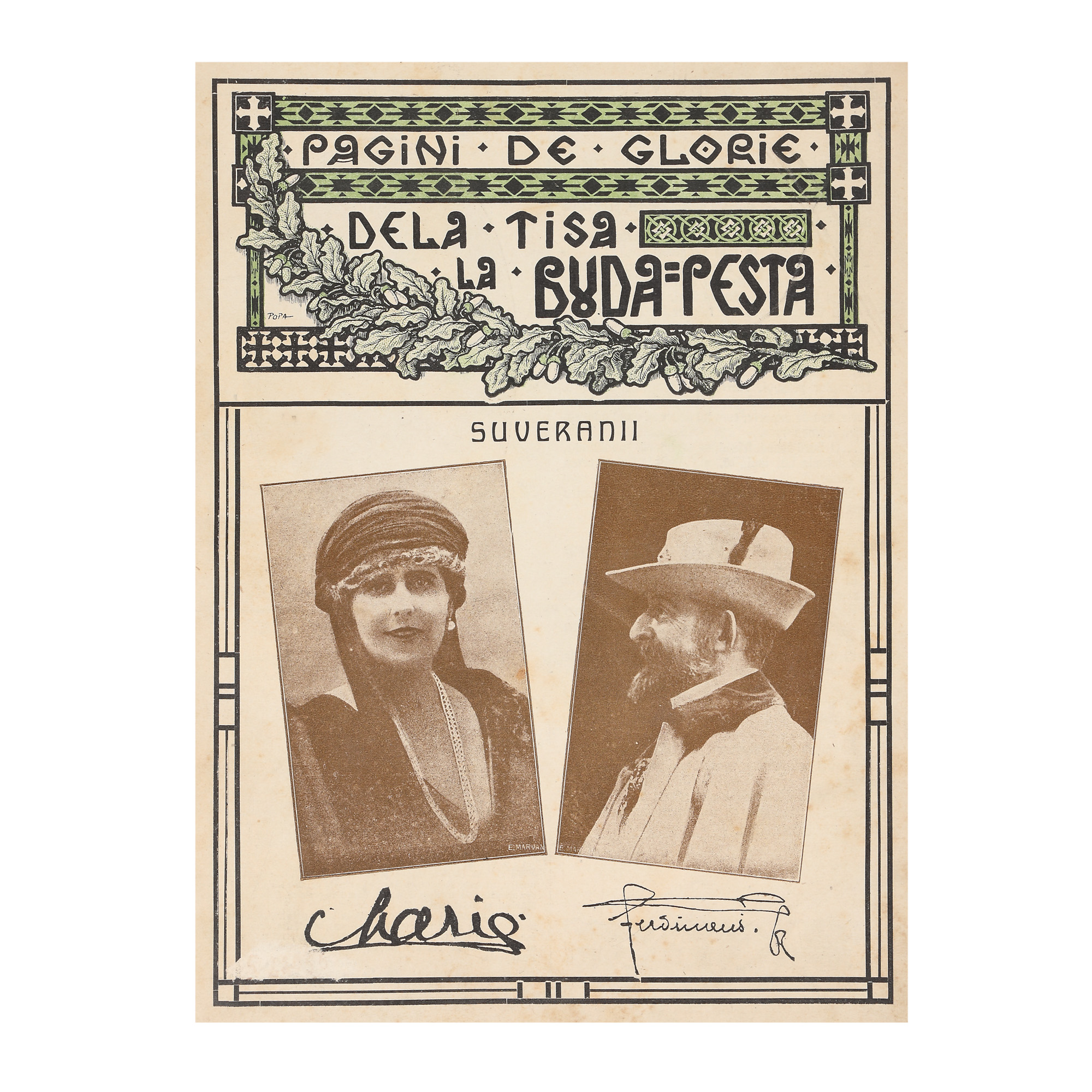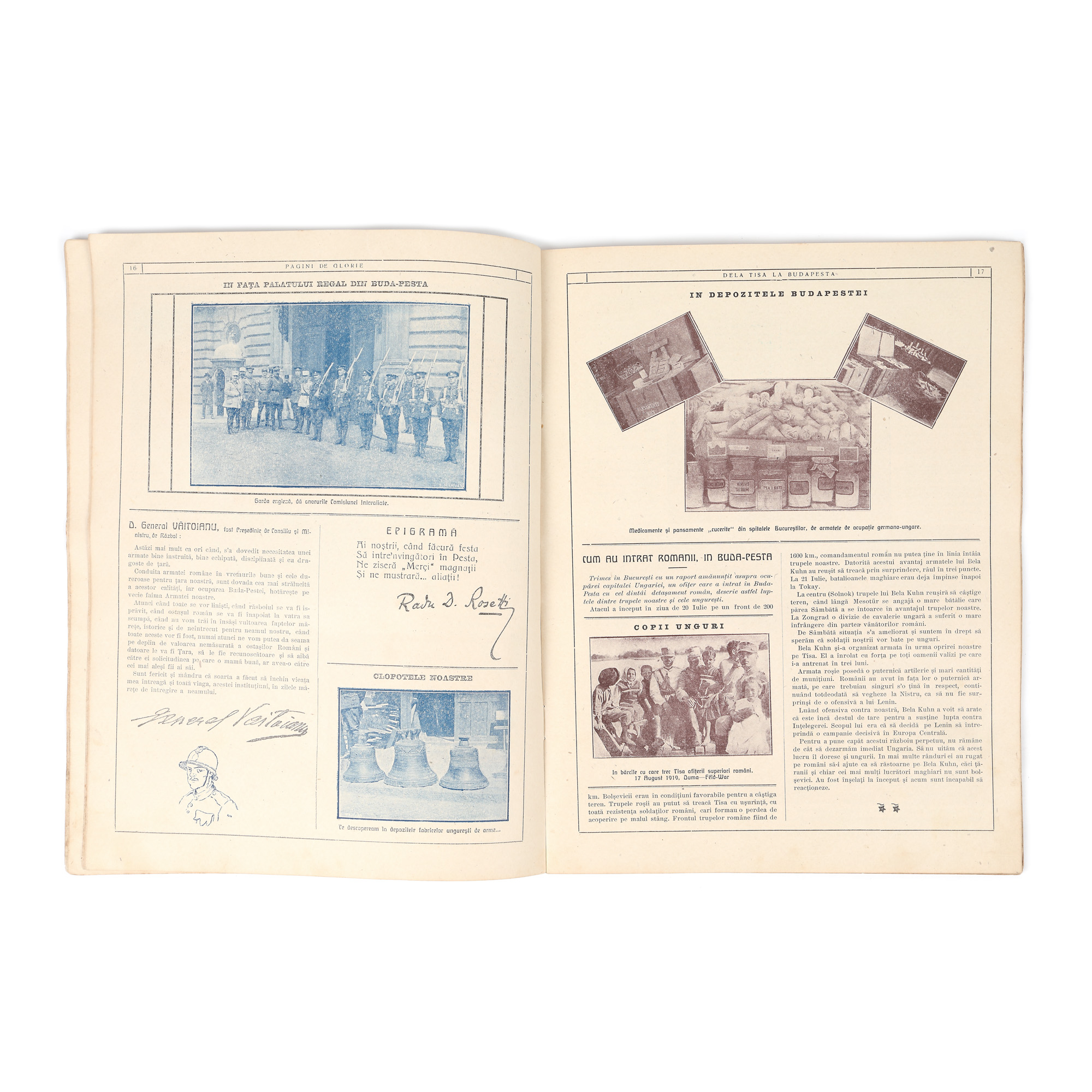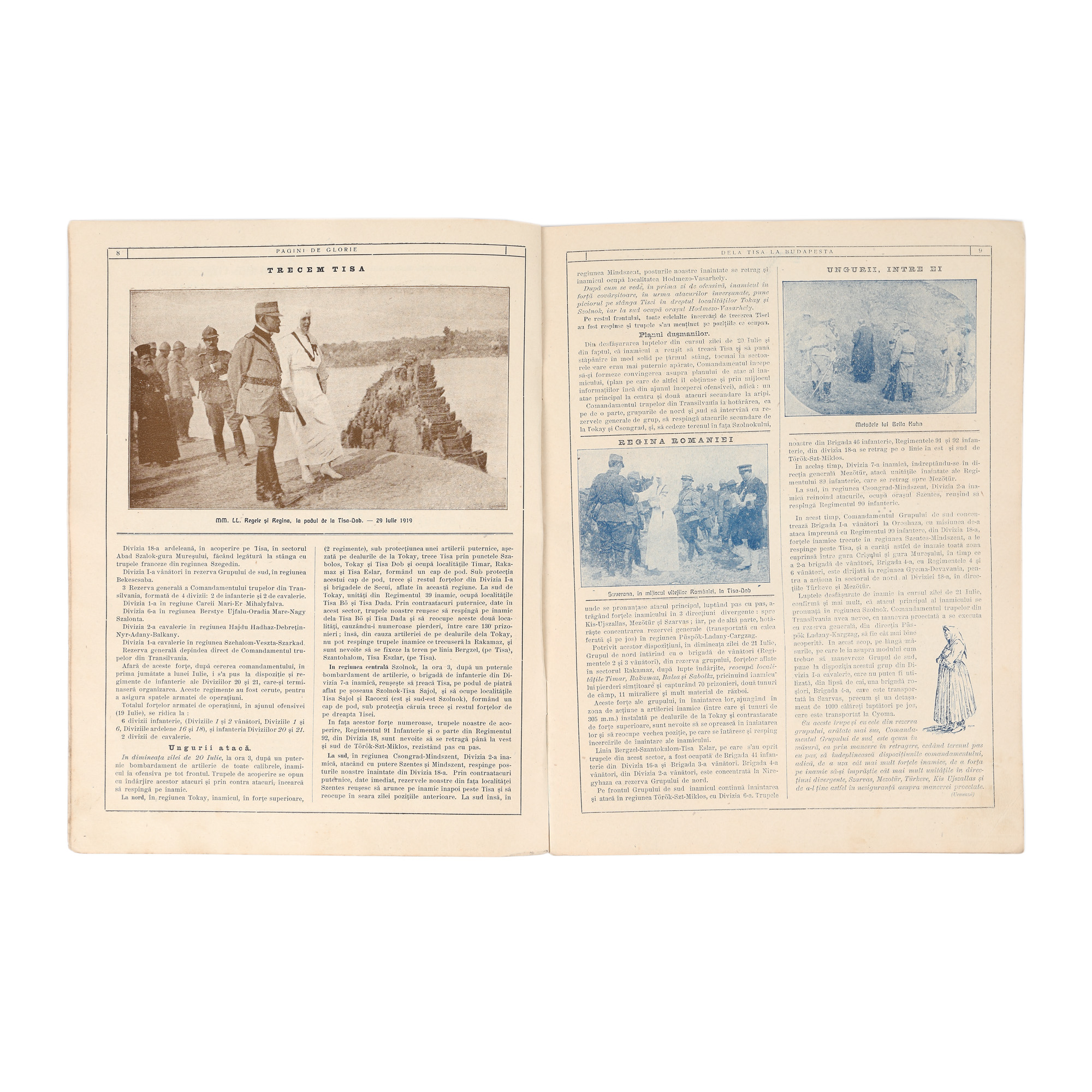 231. Revista "Pagini de Glorie - de la Tisa la Budapesta", ilustrându-i pe copertă pe Regina Maria și pe Regele Ferdinand, București, 1921