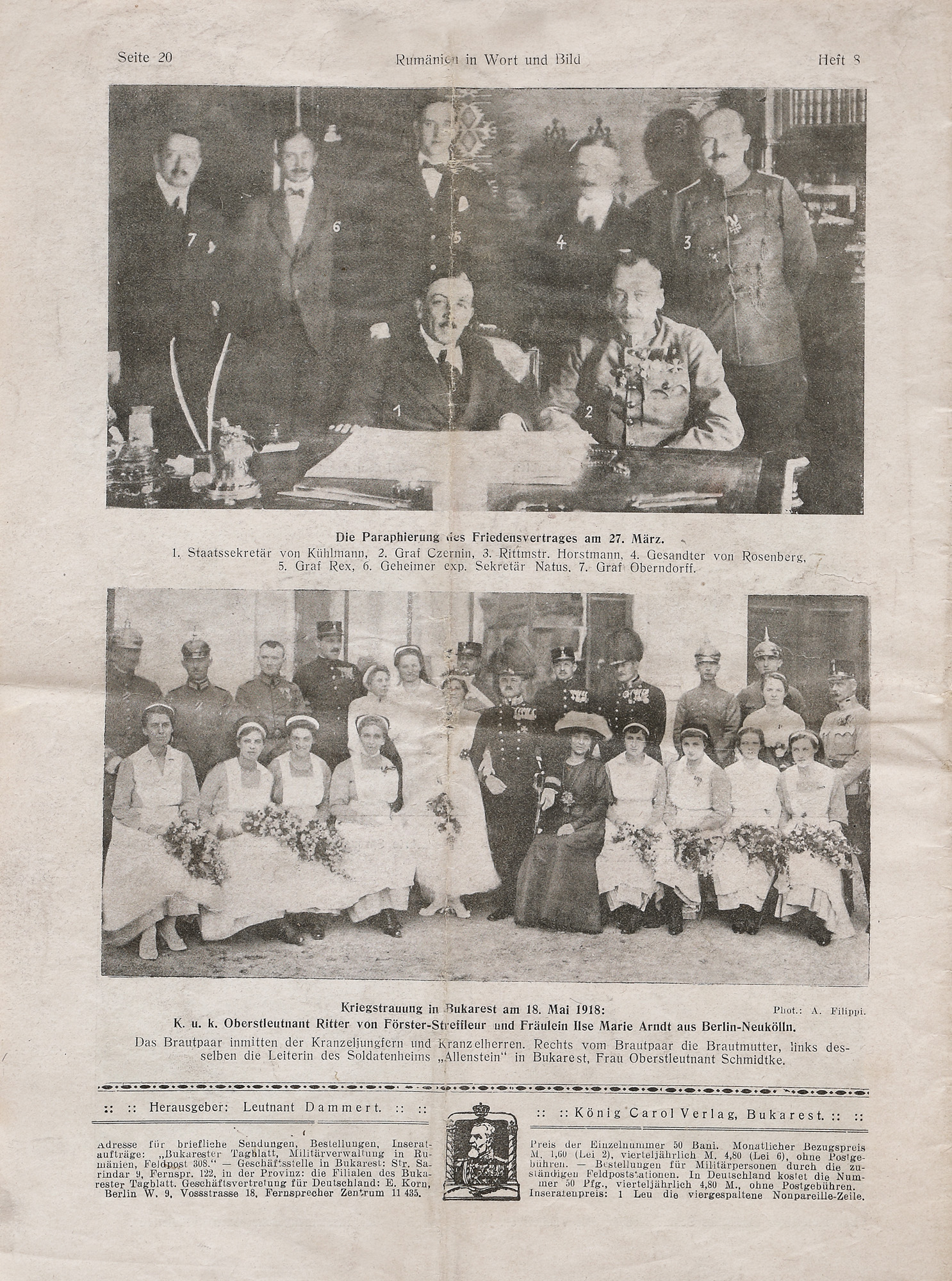 225. Revista ”România în cuvinte și imagini”, germană, publicată la București în timpul ocupației, 31 mai 1918, număr dedicat Tratatului de pace de la București