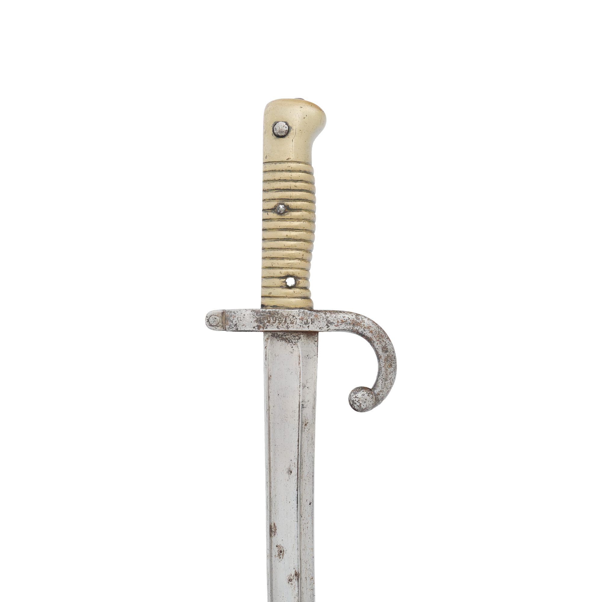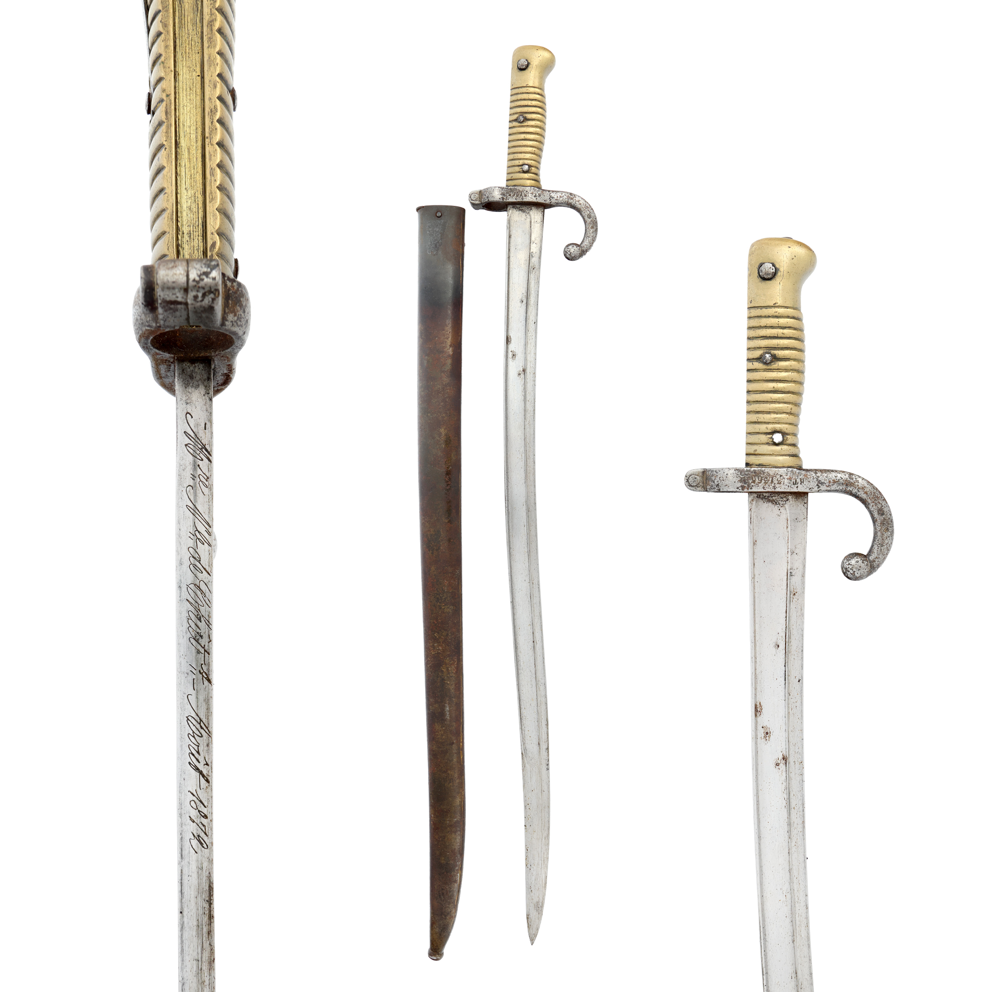 39. Baionetă-sabie, model 1866, cu teacă, pentru pușca Chassepot, Franța, datată 1872