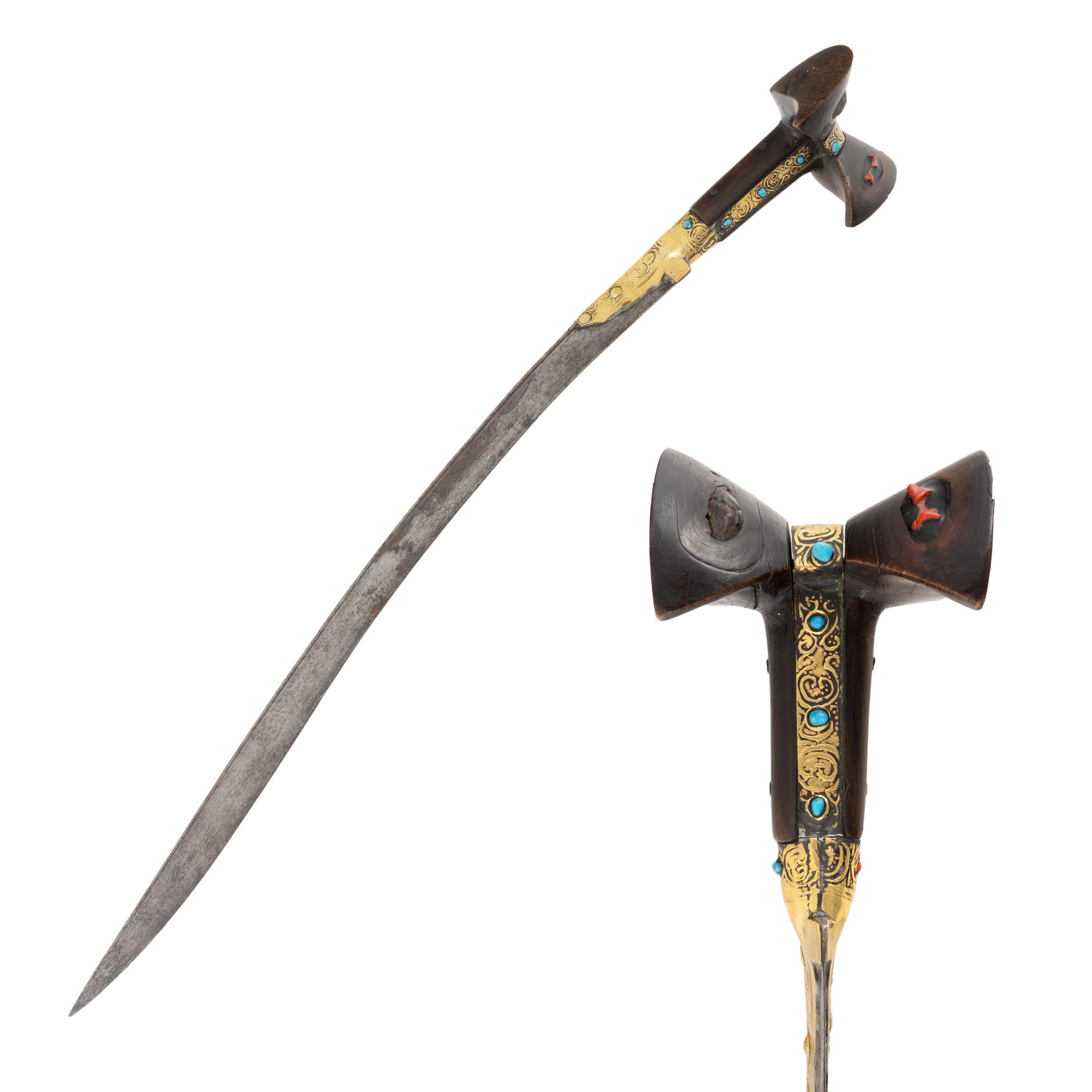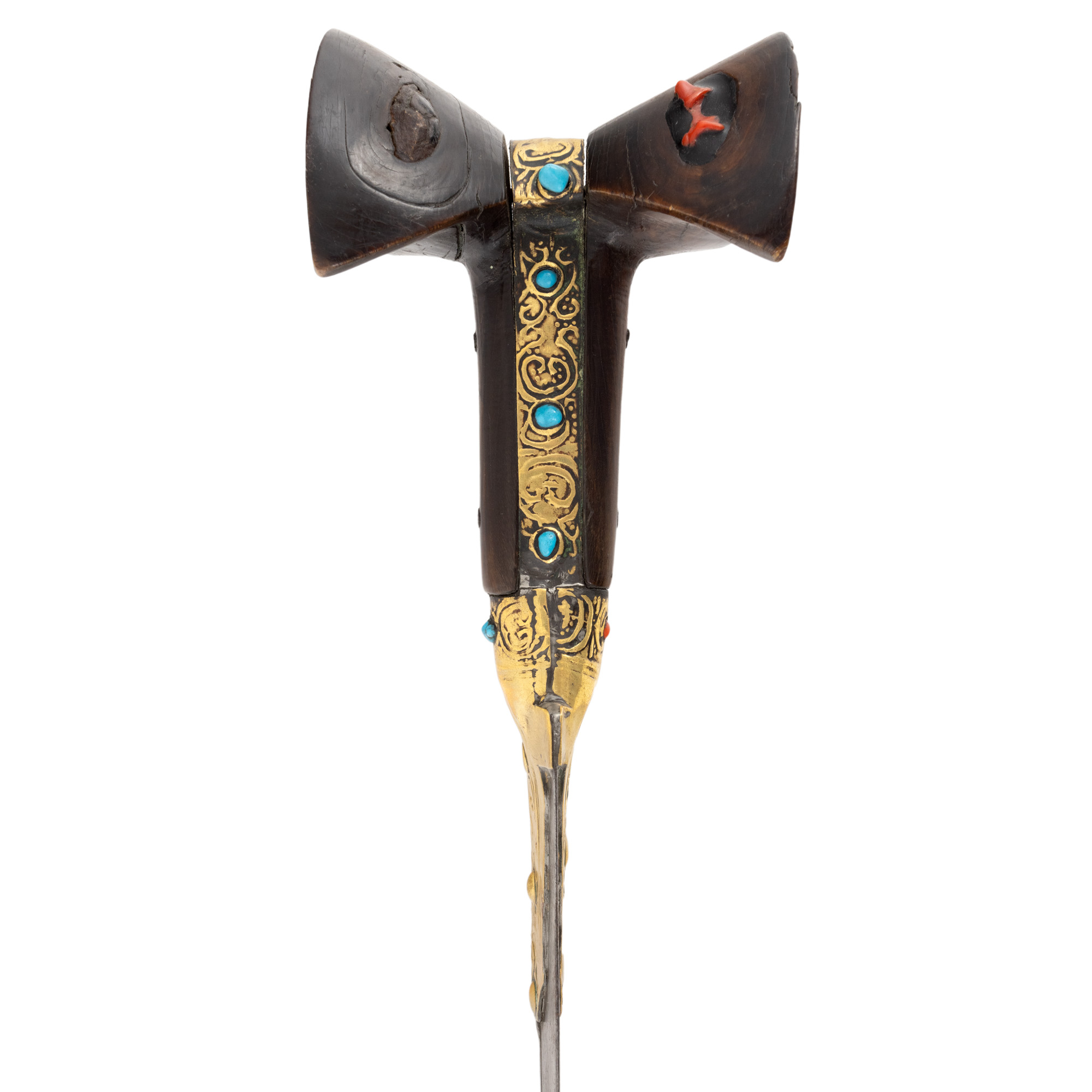 oțel, alamă, turcoaz, coral, lemn