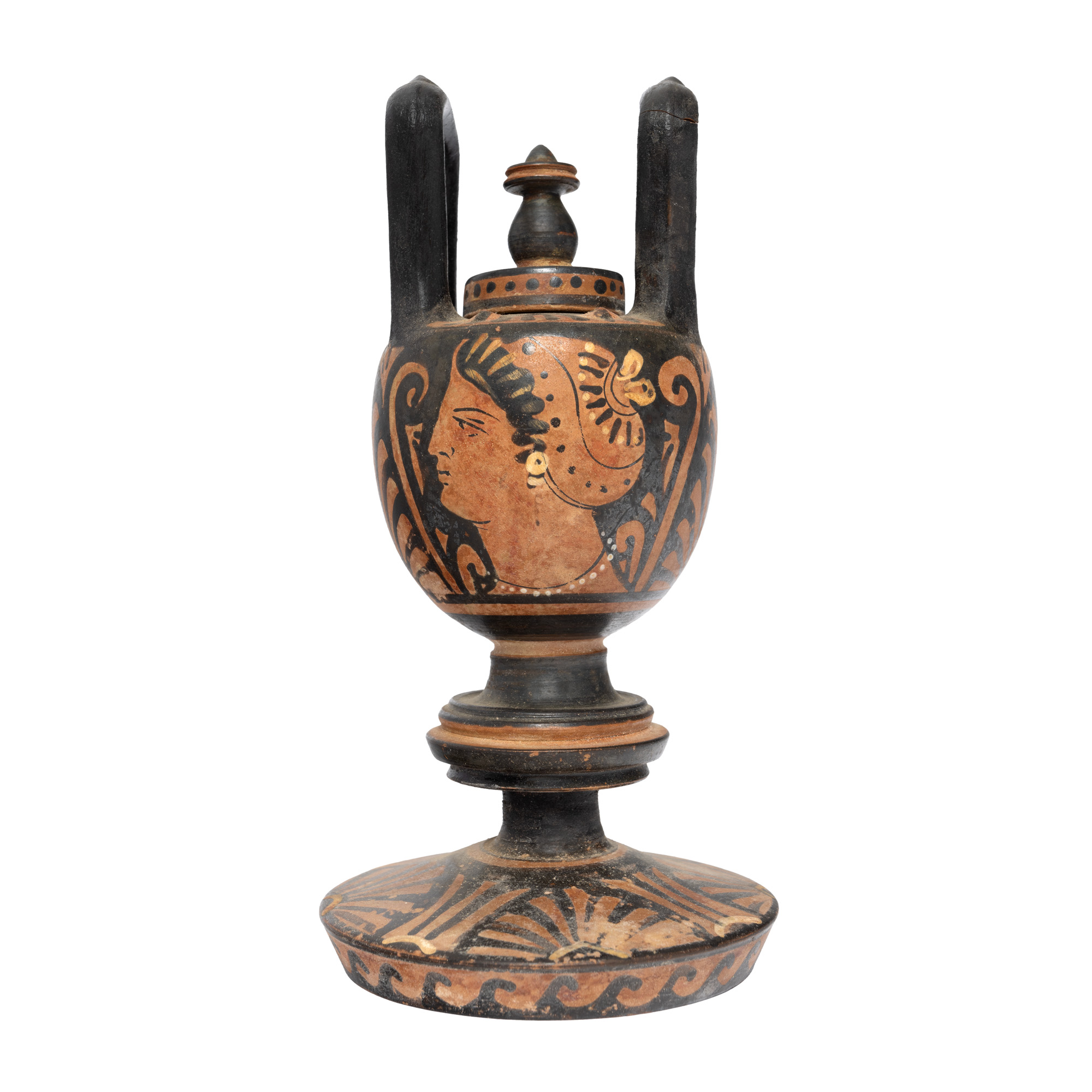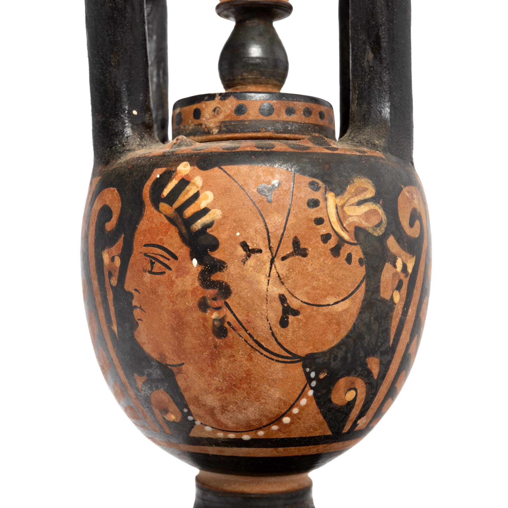 70Т. Lebes Gamikos (vas pentru nuntă), pictat în tehnica figurilor roșii, Apulia, Sudul Italiei, 340-320 î.e.n.