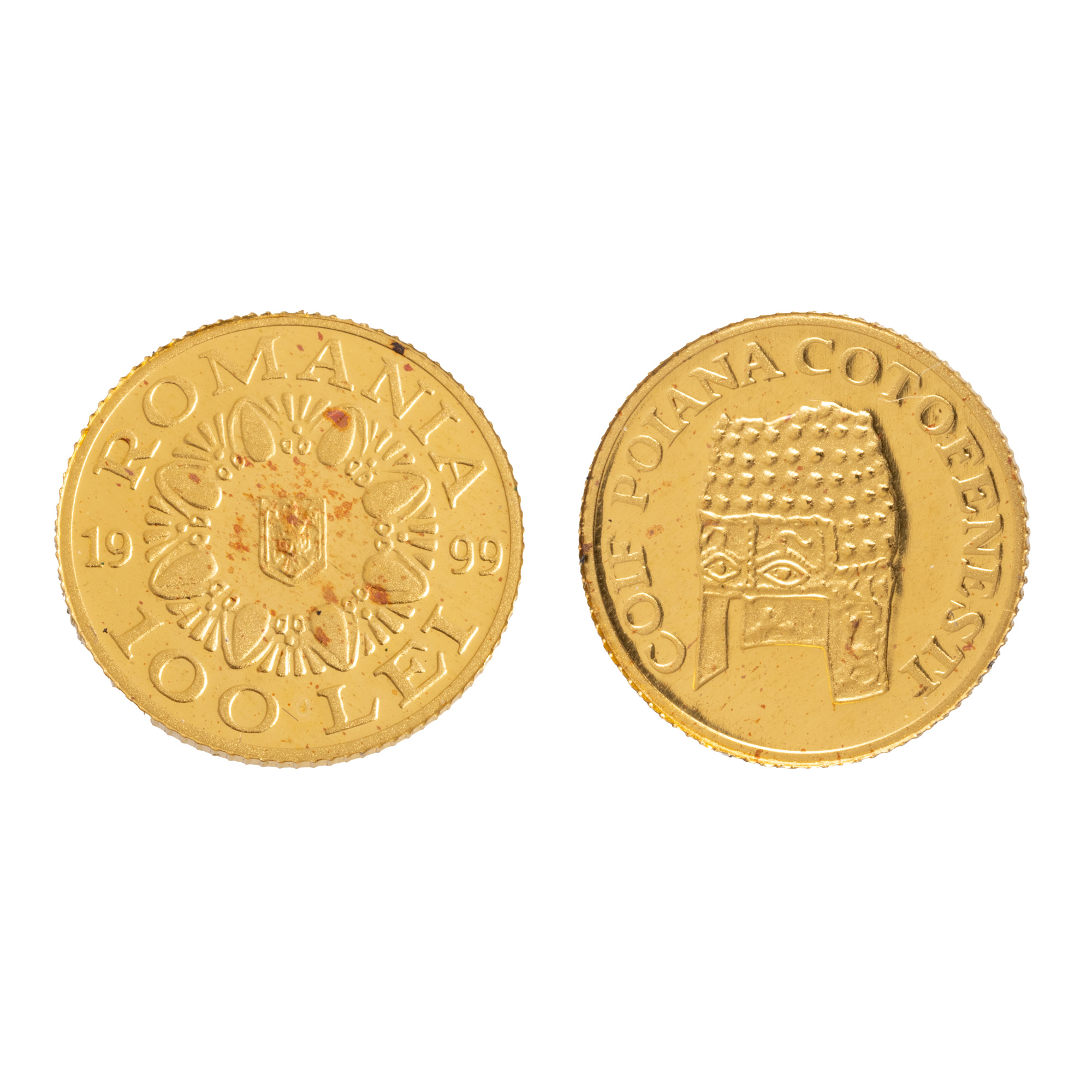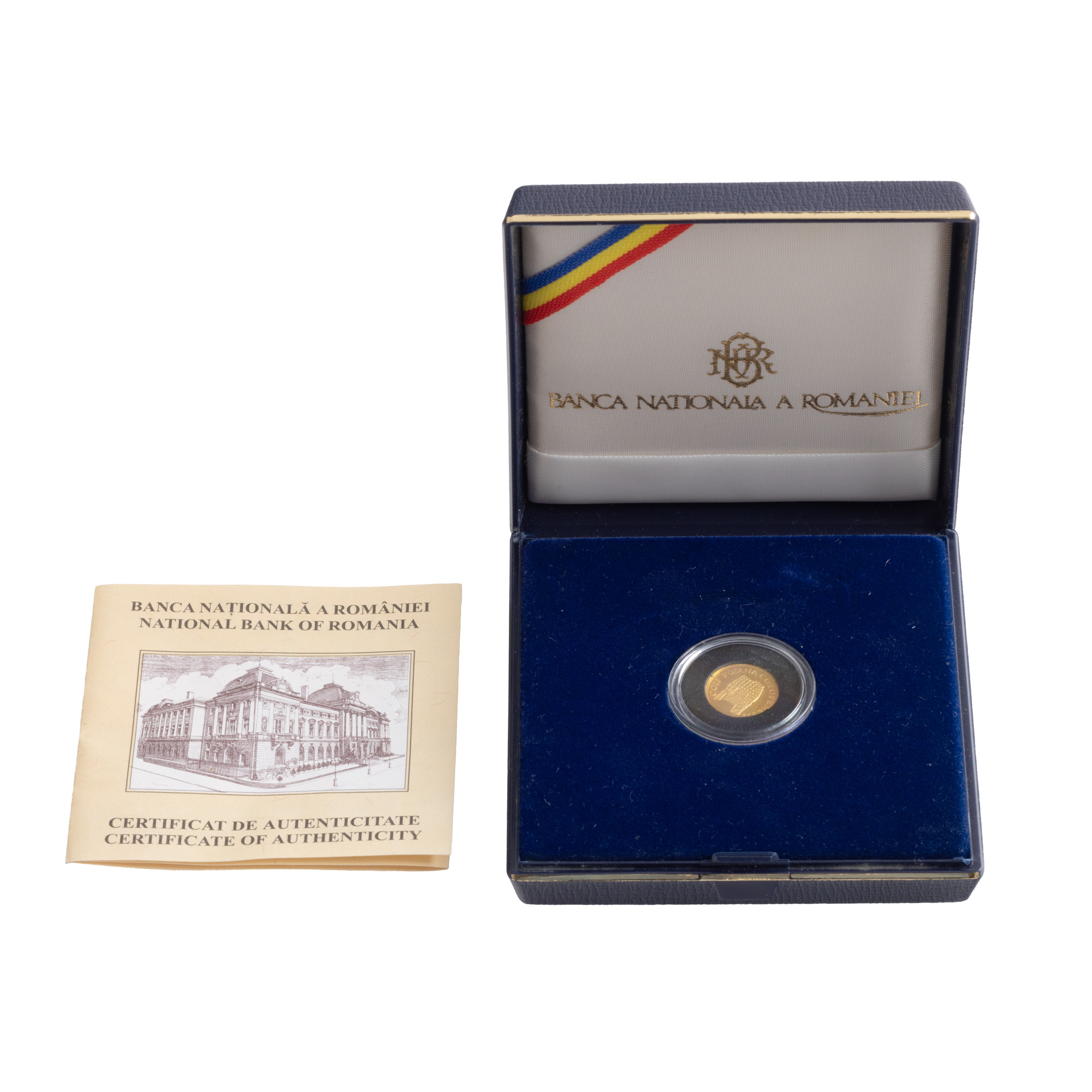 61. Monedă comemorativă BNR, Coiful de la Poiana Coțofenești, aur, însoțită de certificat și broșură