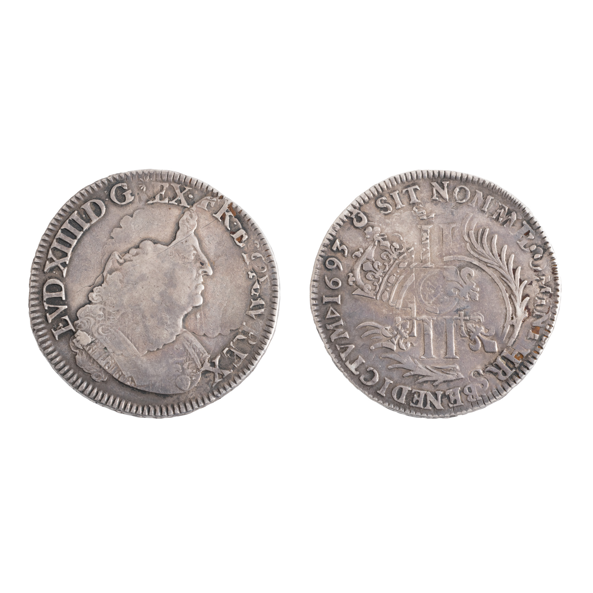37. Monedă Ecu, Ludovic XIV, Franța, 1693, cu o interesantă eroare de batere