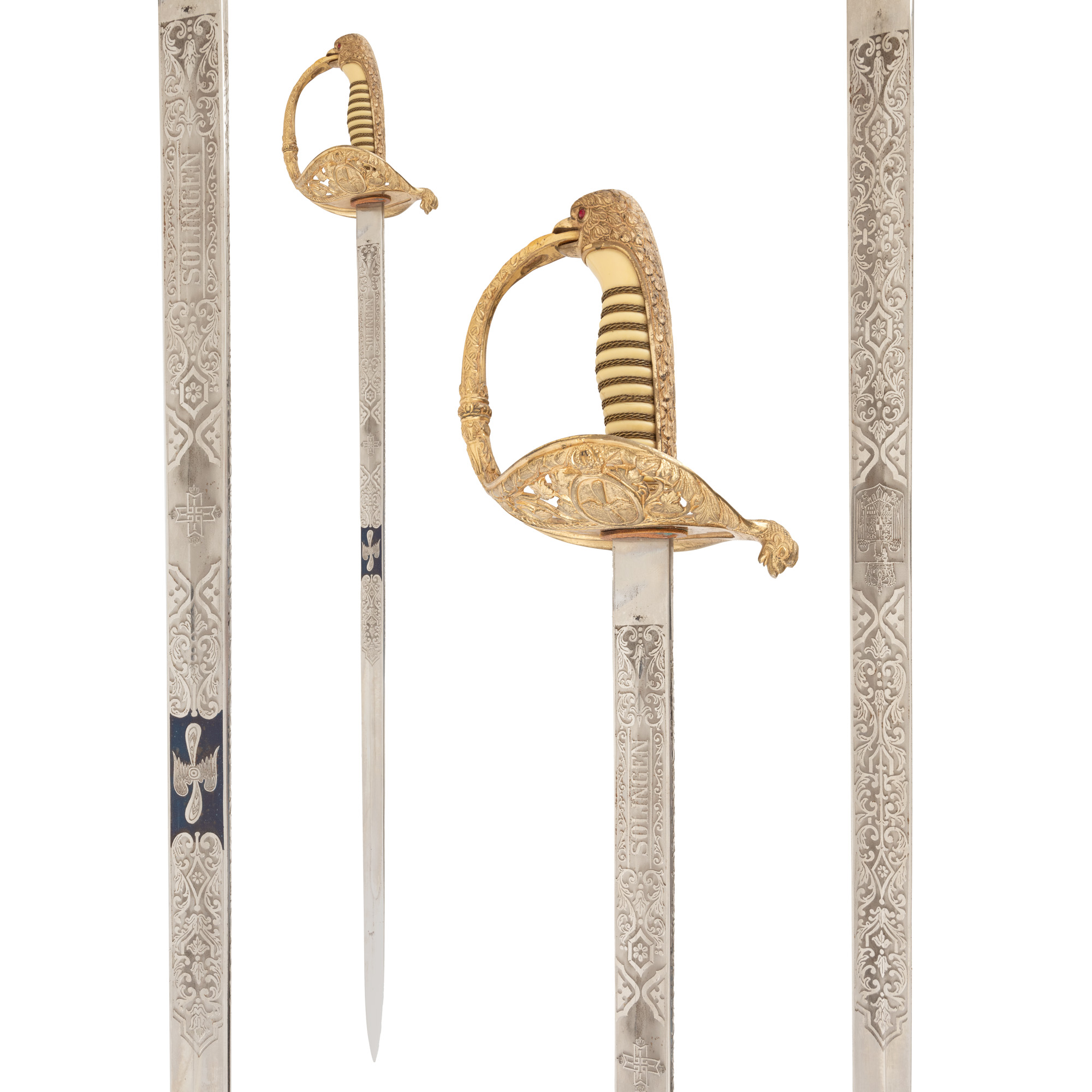 93. Sabie de ofițer de aviație, cu cifrul Regelui Mihai I, cca. 1940, piesă foarte rară