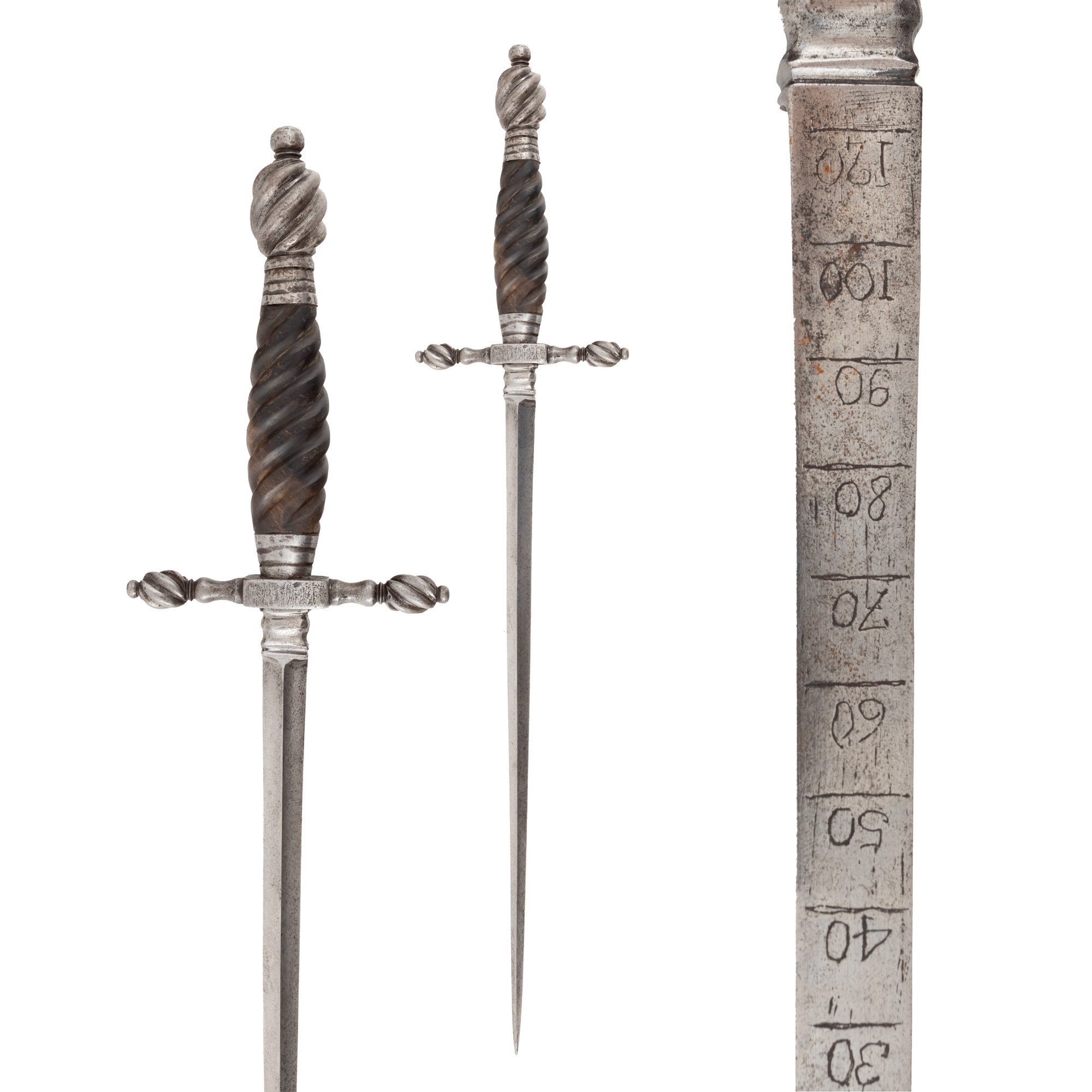 107. Stilet de artilerie gravat, Italia, prima jumătate a sec. XVII, piesă de colecție